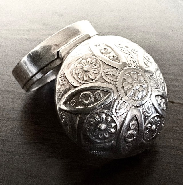 英国ビンテージ ピルボックス ドーム型 シルバー純銀13.6g 1995年 CME社製 英国雑貨 ビンテージコレクション