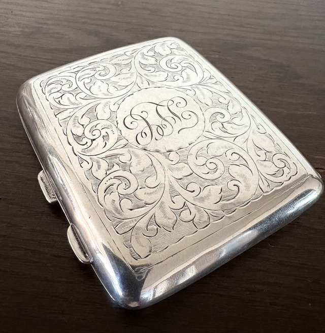 英国アンティーク シガレットケース 喫煙具 両面彫金 唐草模様 シルバー 純銀79g バーミンガム ジョージ6世 1921年JBROS社 イギリス/英国雑貨 アンティークコレクション