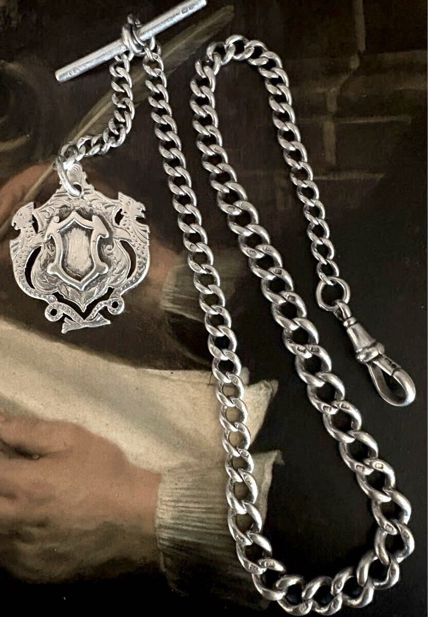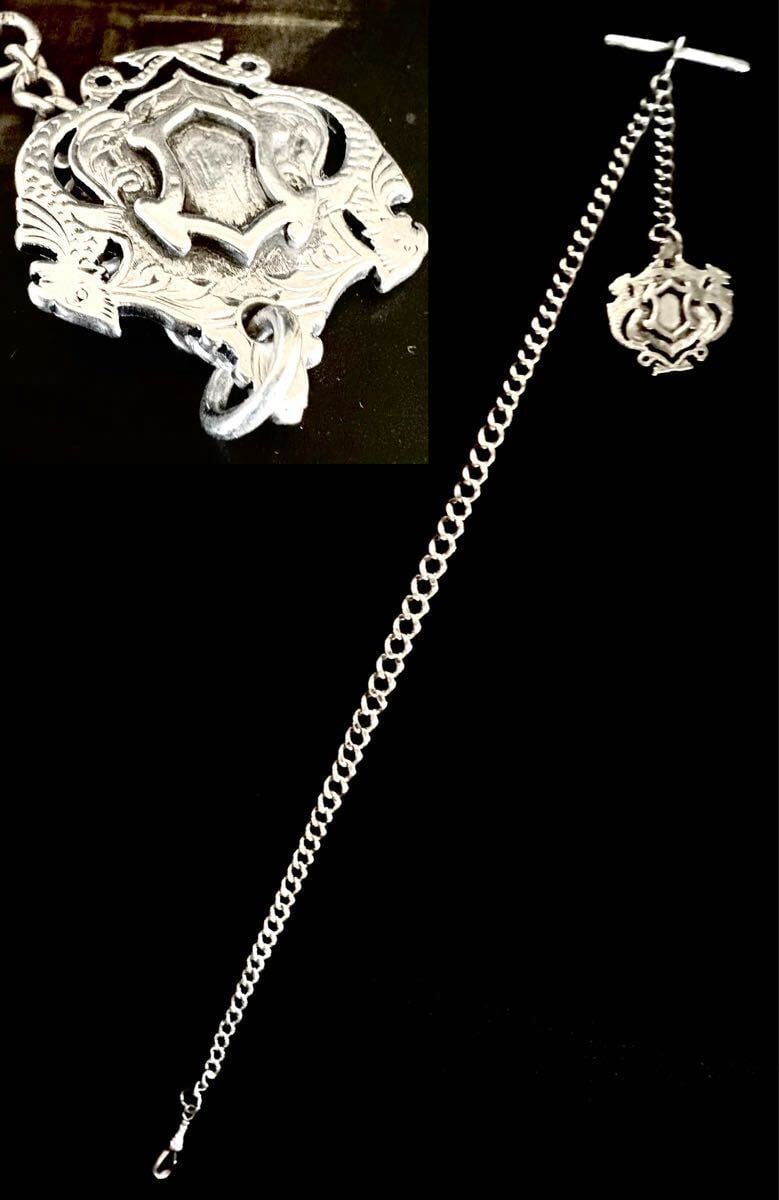 英国アンティーク 神話的表象フォブ シングルロング 懐中時計/アルバートチェーン シルバー純銀43.4g ビクトリア期1886年バーミンガム ガード/ウオッチ コレクターズ Britishmade | 英国アンティークマーケット アンカー