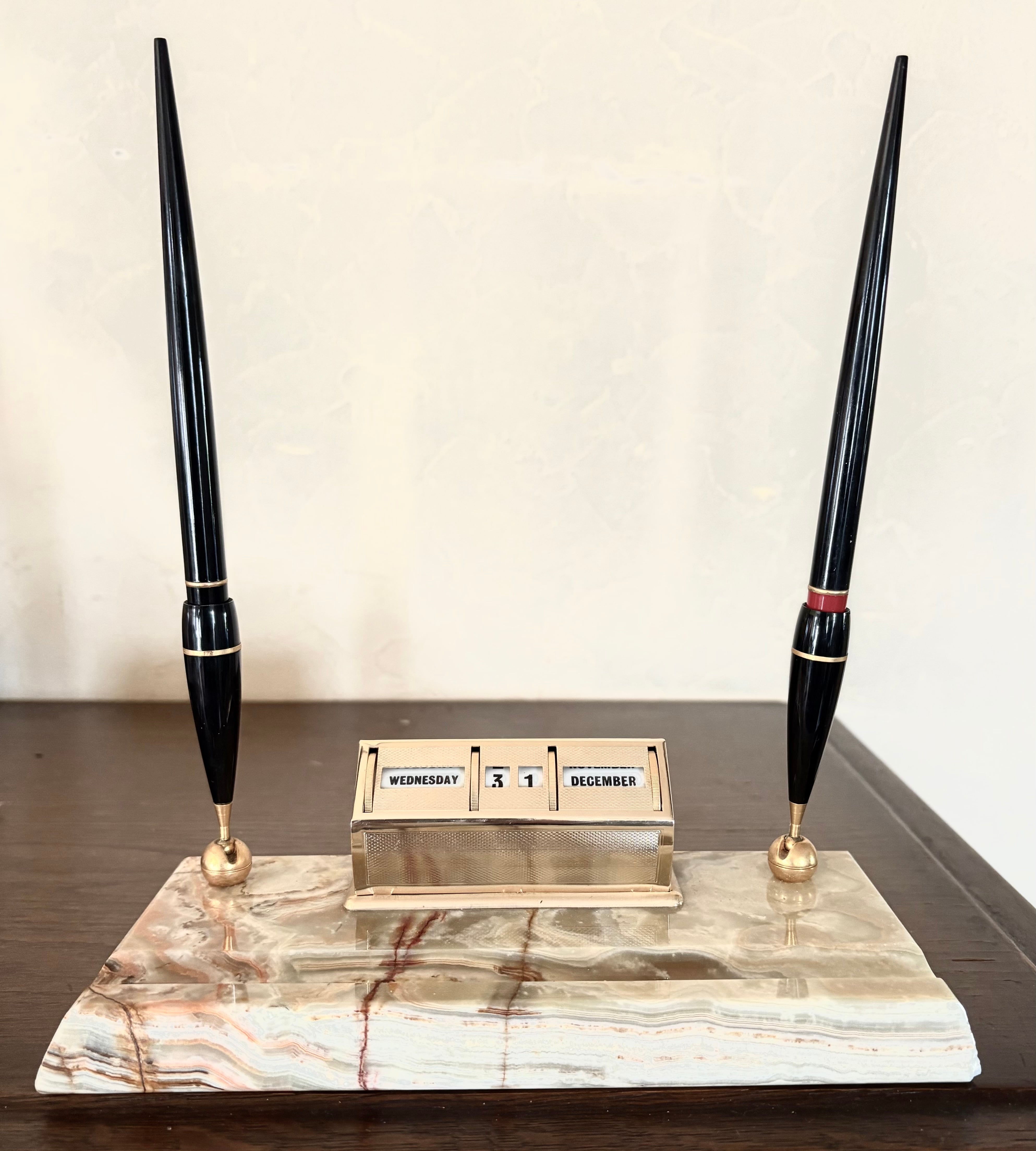 英国ビンテージ1960年代 万年 卓上カレンダー デスク ステーショナリー/Wペン立て付 真鍮 大理石 英国雑貨 Brass & Marble/MADE IN ENGLAND | 英国アンティークマーケット アンカー