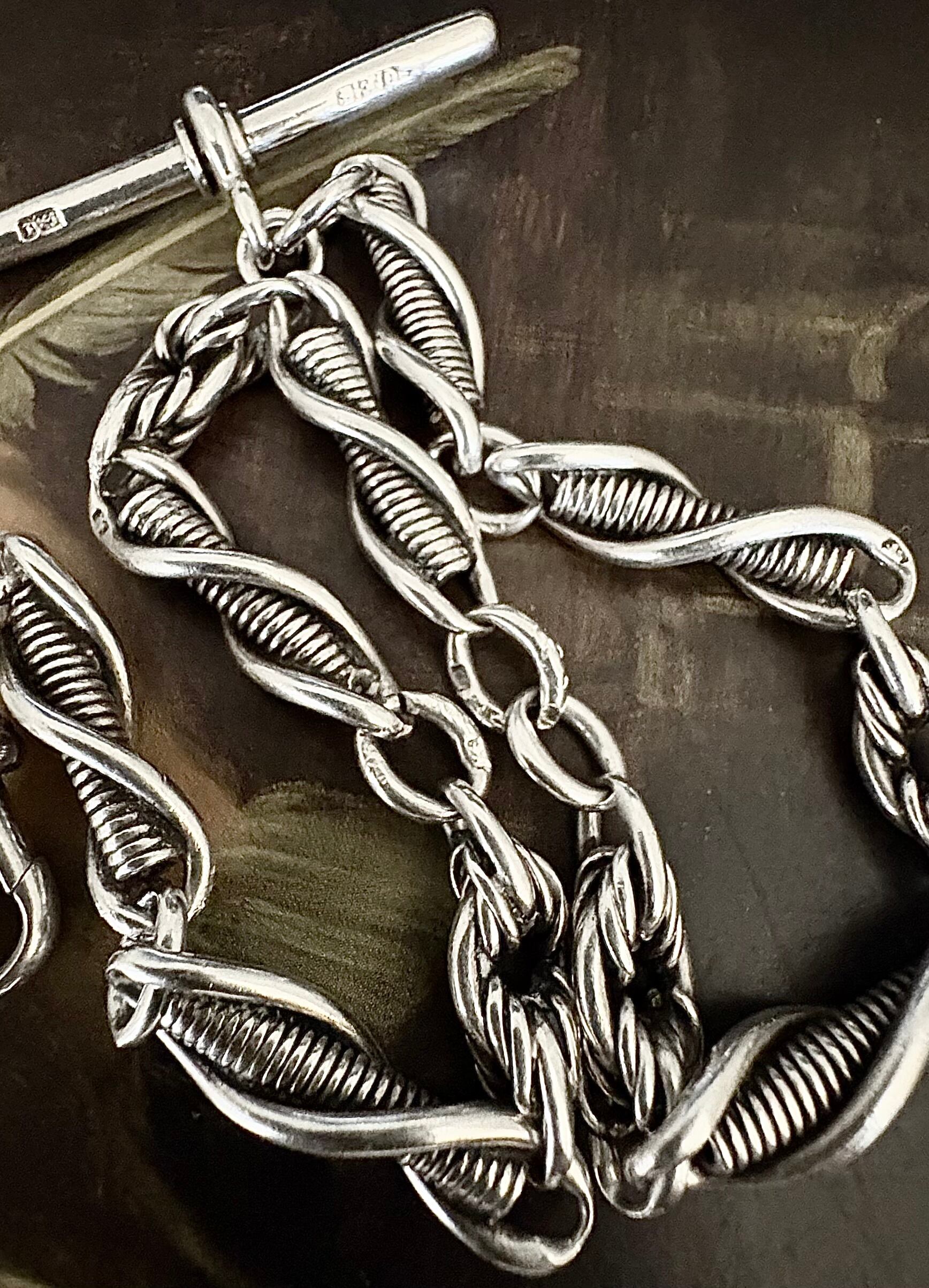 英国純銀製、懐中時計用のアルバートチェーンのご紹介です。