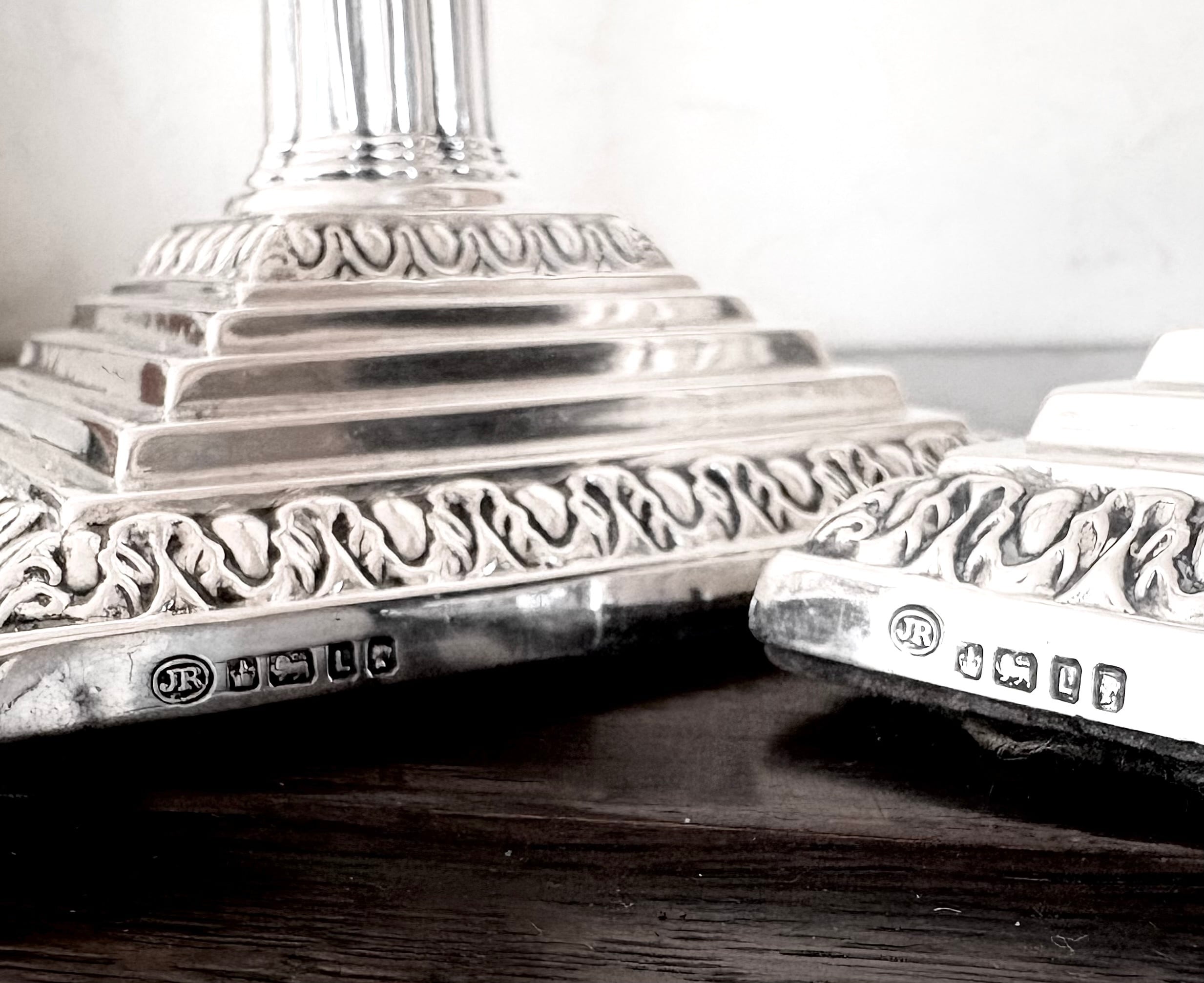 英国アンティーク支柱/コラム 台座 キャンドルスティツク スタンド ホルダー 蝋燭立 シルバー純銀461g 2点ペア シェフィールド ビクトリア期1878年 JR社製 英国雑貨 英国スタイル クリスマスキャンドル