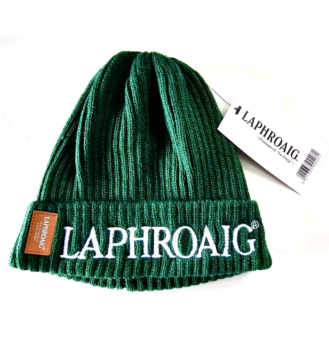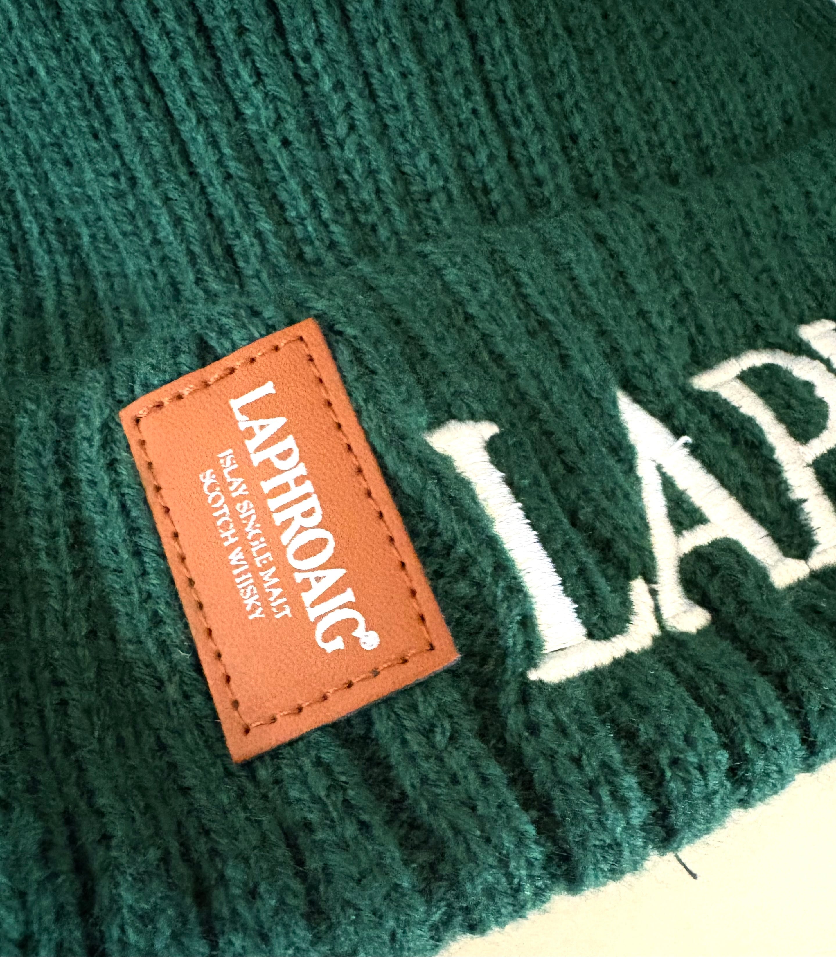 Laphroaig ラフロイグ グリーン レザーワッペン付き Beanie Hat Charcoal 帽子 ニット帽 ビーニーハット シングルモルトウイスキー 蒸留所グッズ | 英国アンティークマーケット アンカー