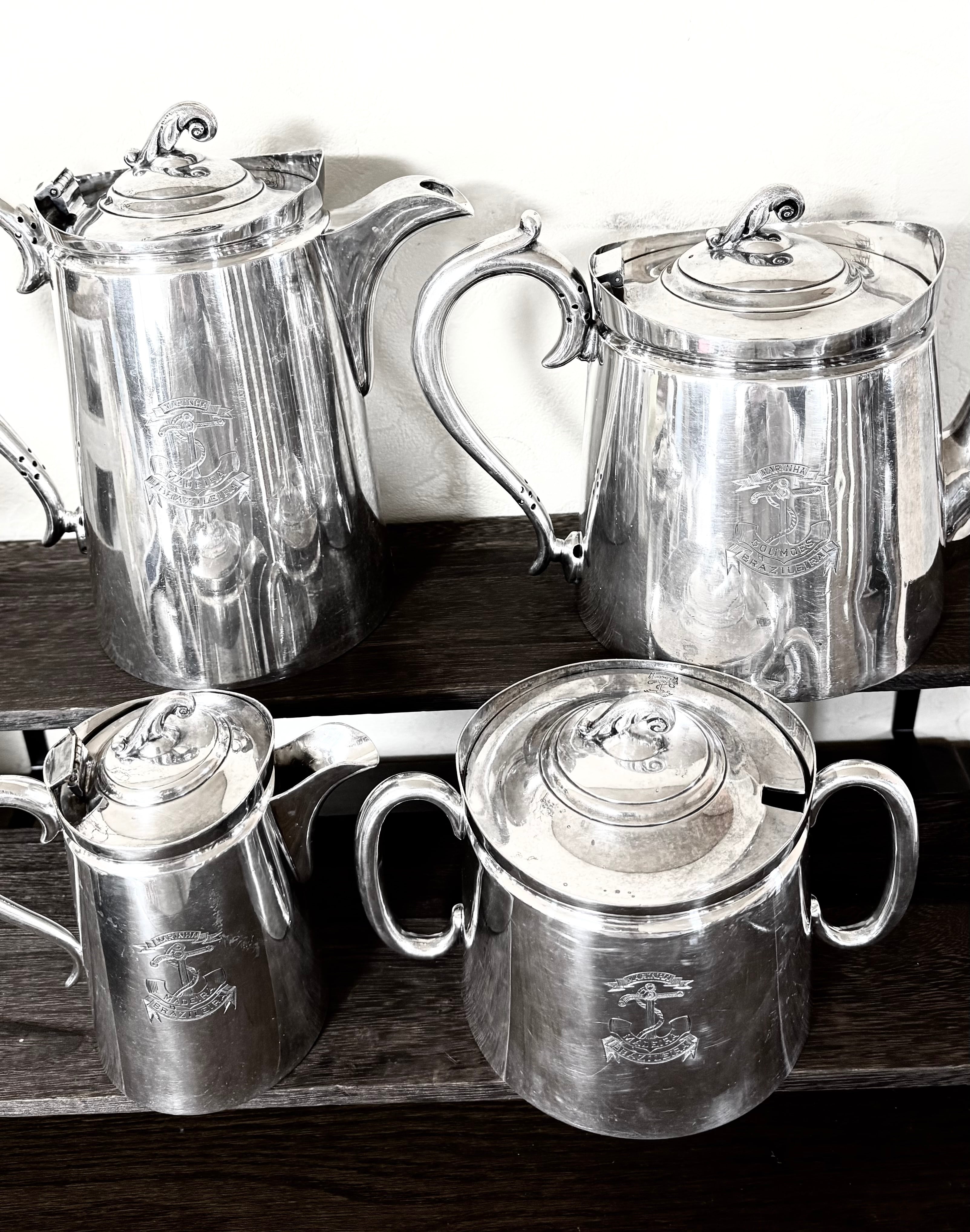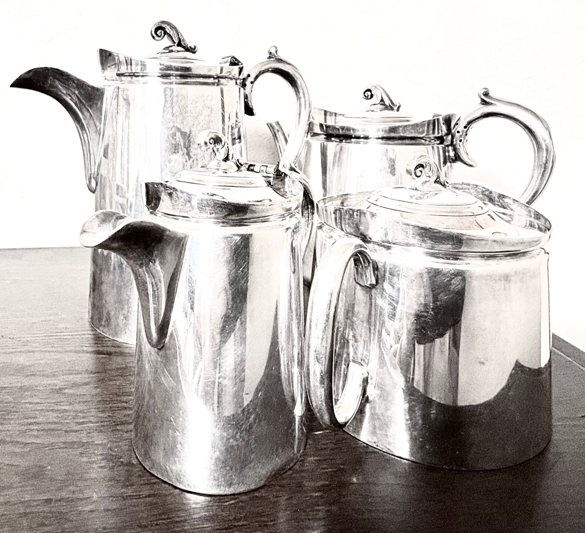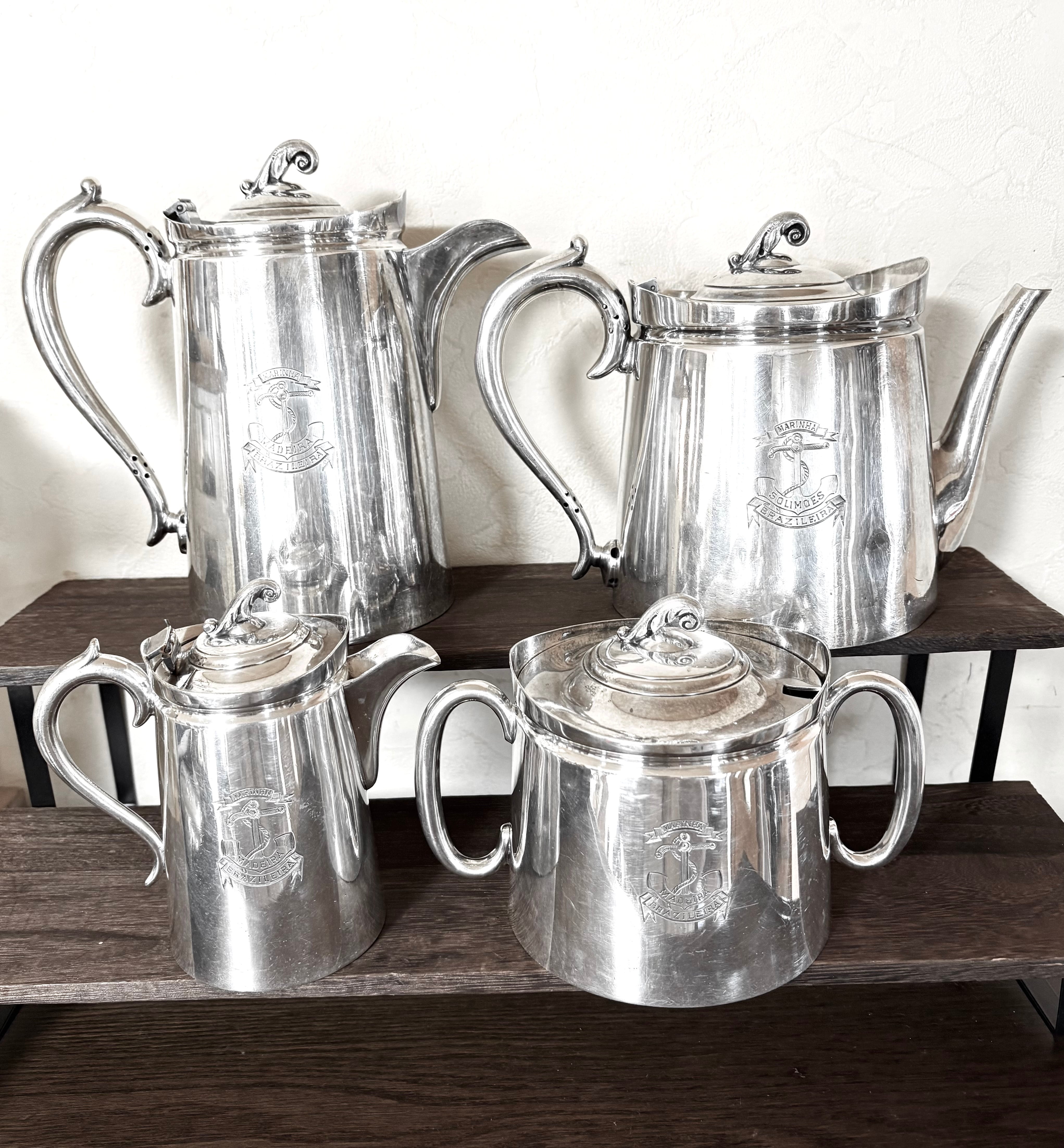 英国アンティーク 英国王室御用達 ウォーカーホール社製 ティー・コーヒーポット/シュガー/クリーマー 銀器 4点セット A1シルバーp 大容量 アフタヌーンティー シルバーウエア テーブルウエア