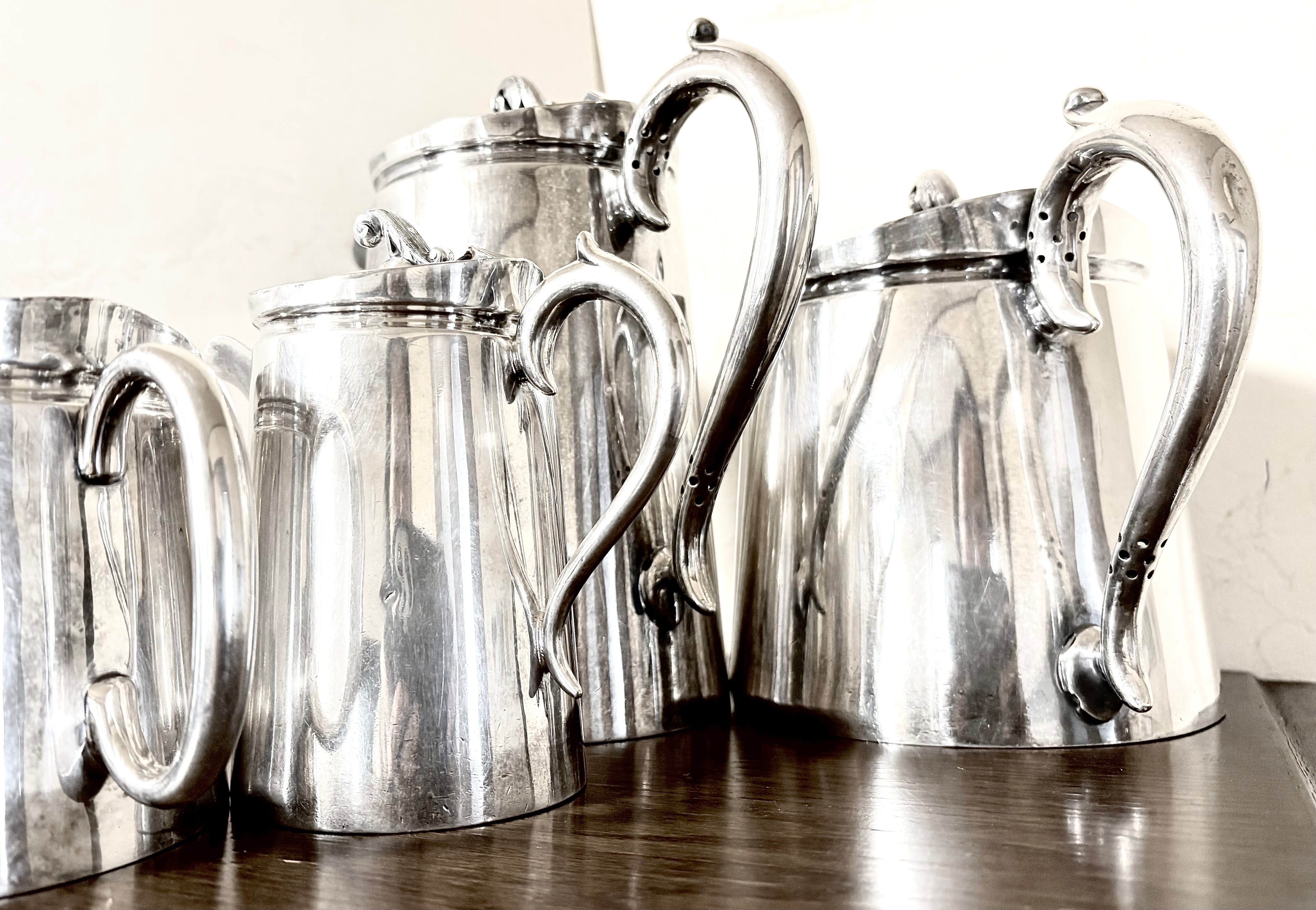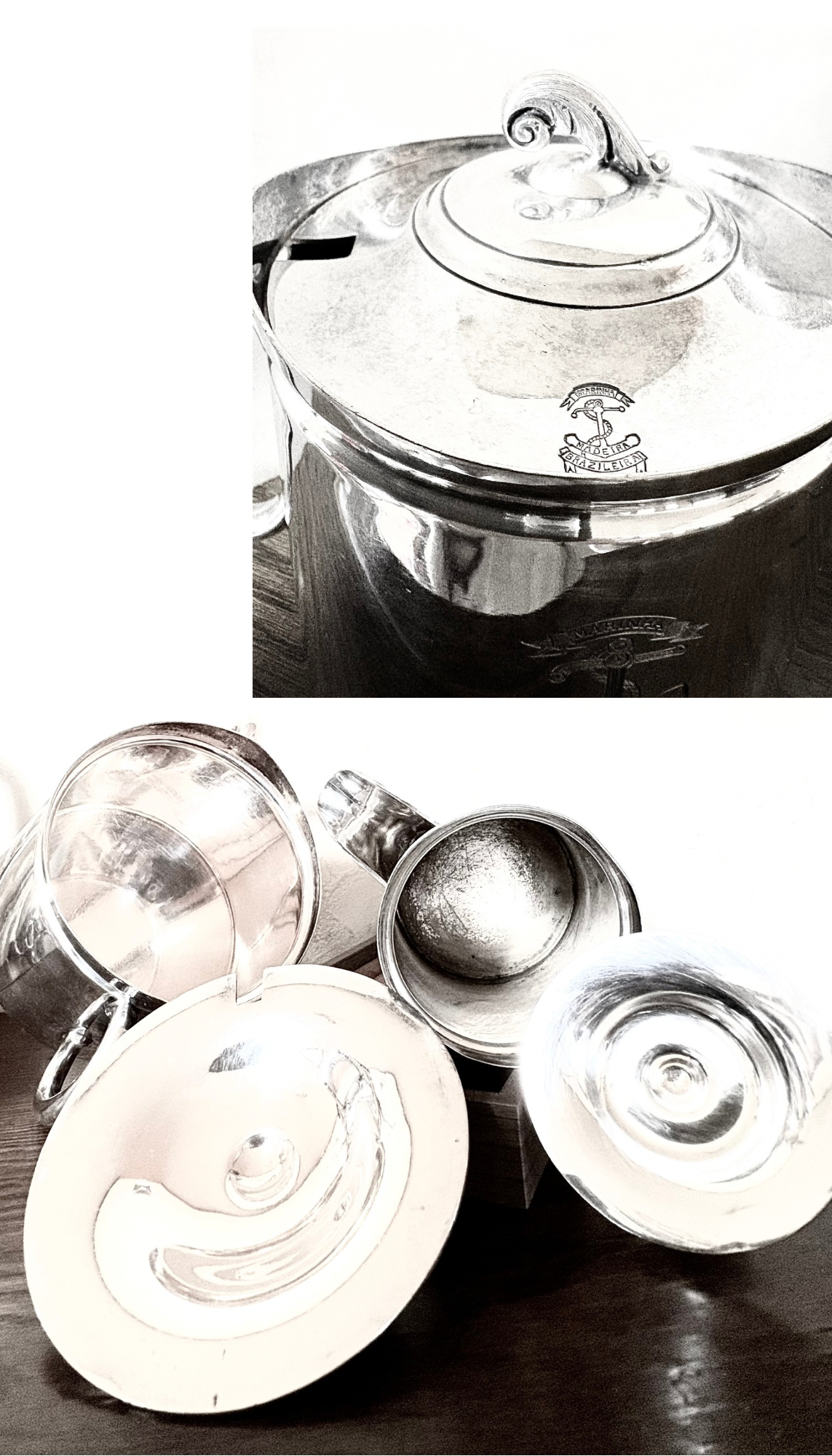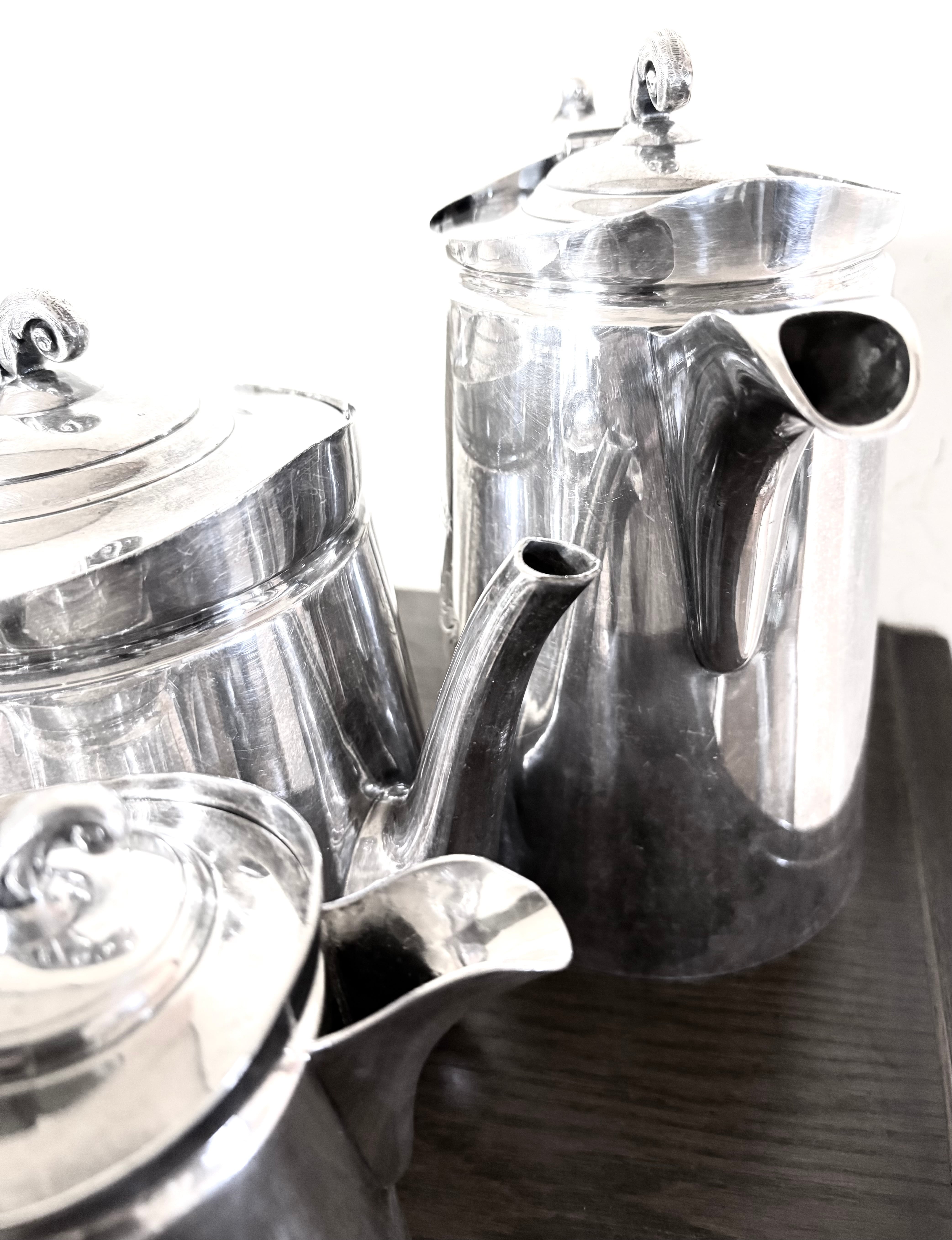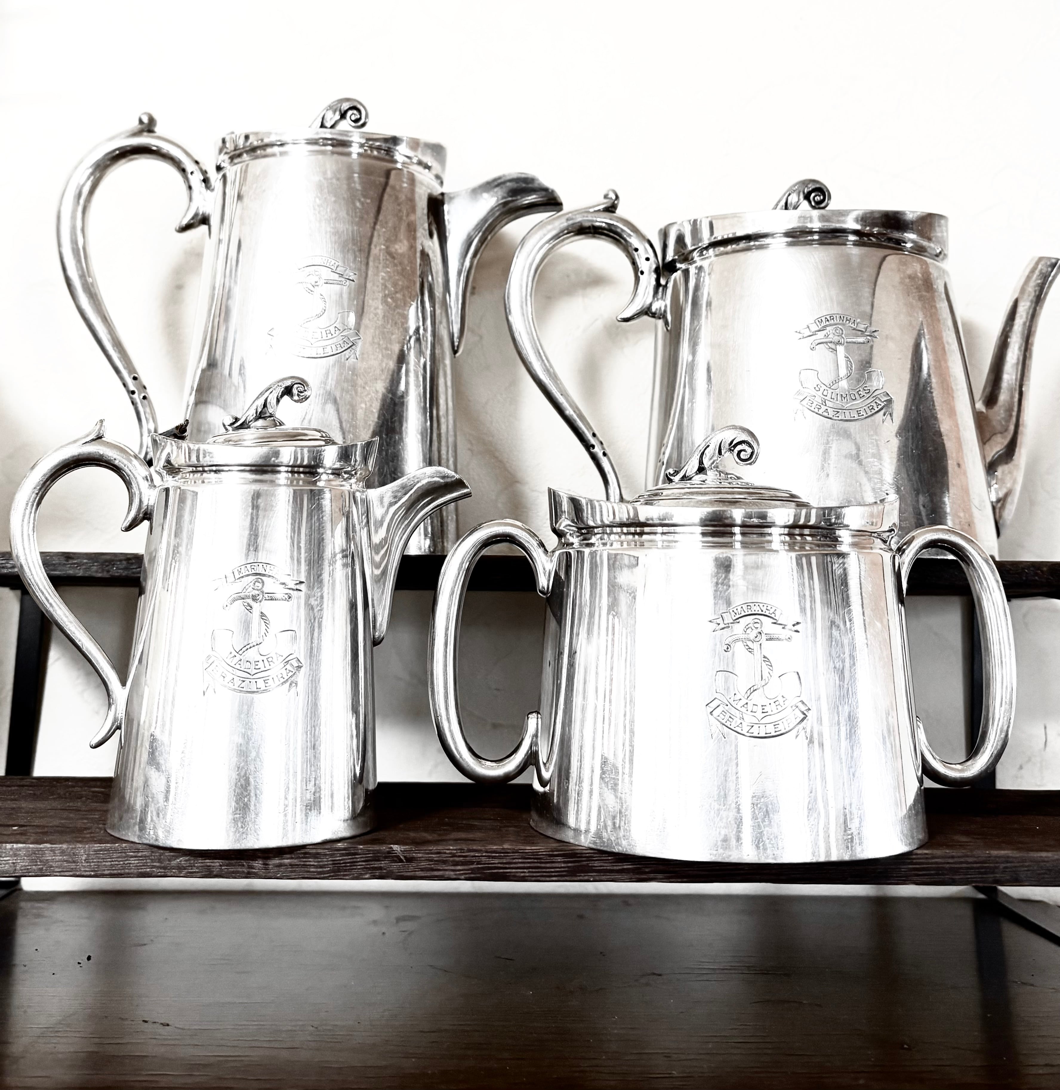 英国アンティーク 英国王室御用達 ウォーカーホール社製 ティー・コーヒーポット/シュガー/クリーマー 銀器 4点セット A1シルバーp 大容量 アフタヌーンティー シルバーウエア テーブルウエア