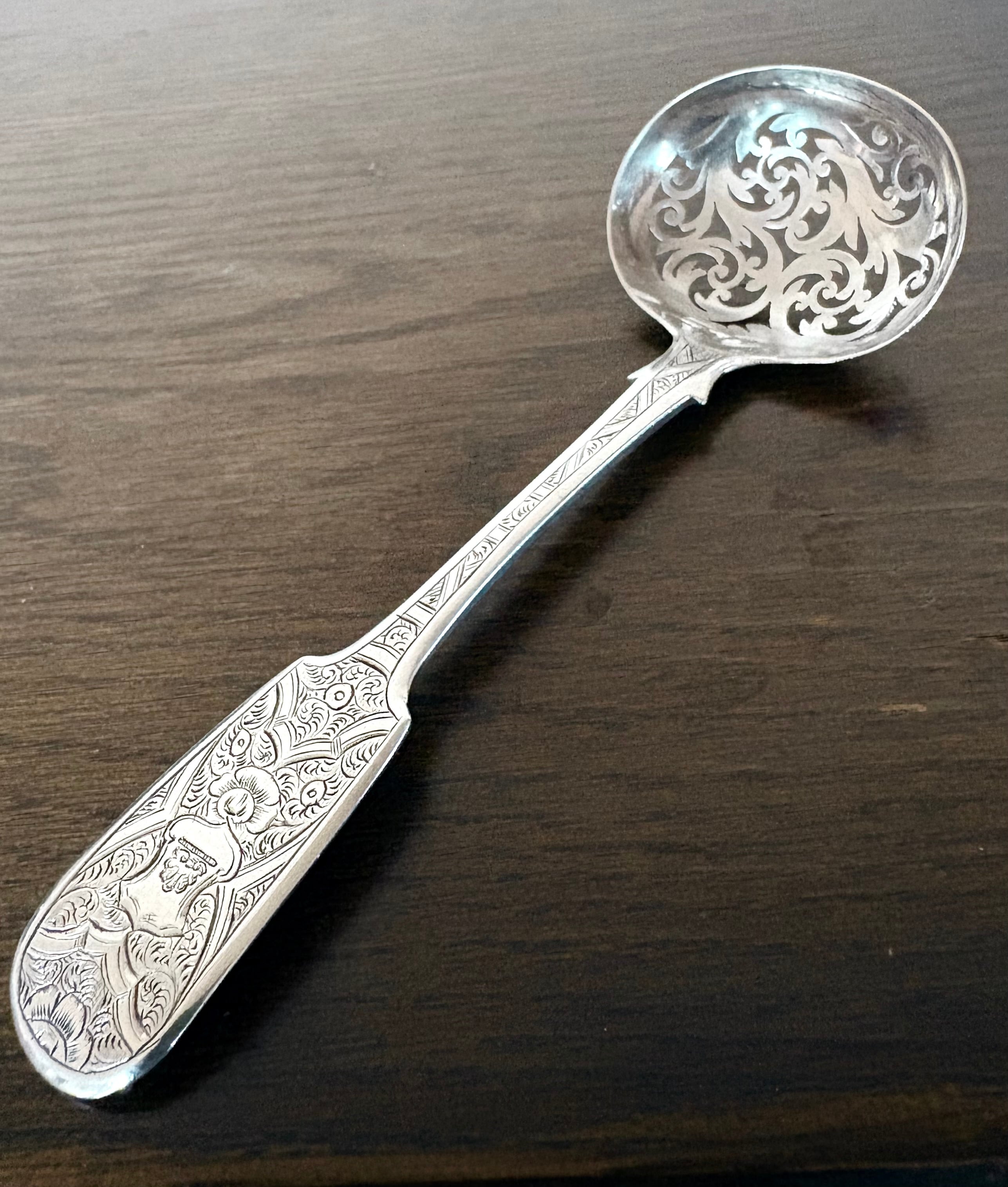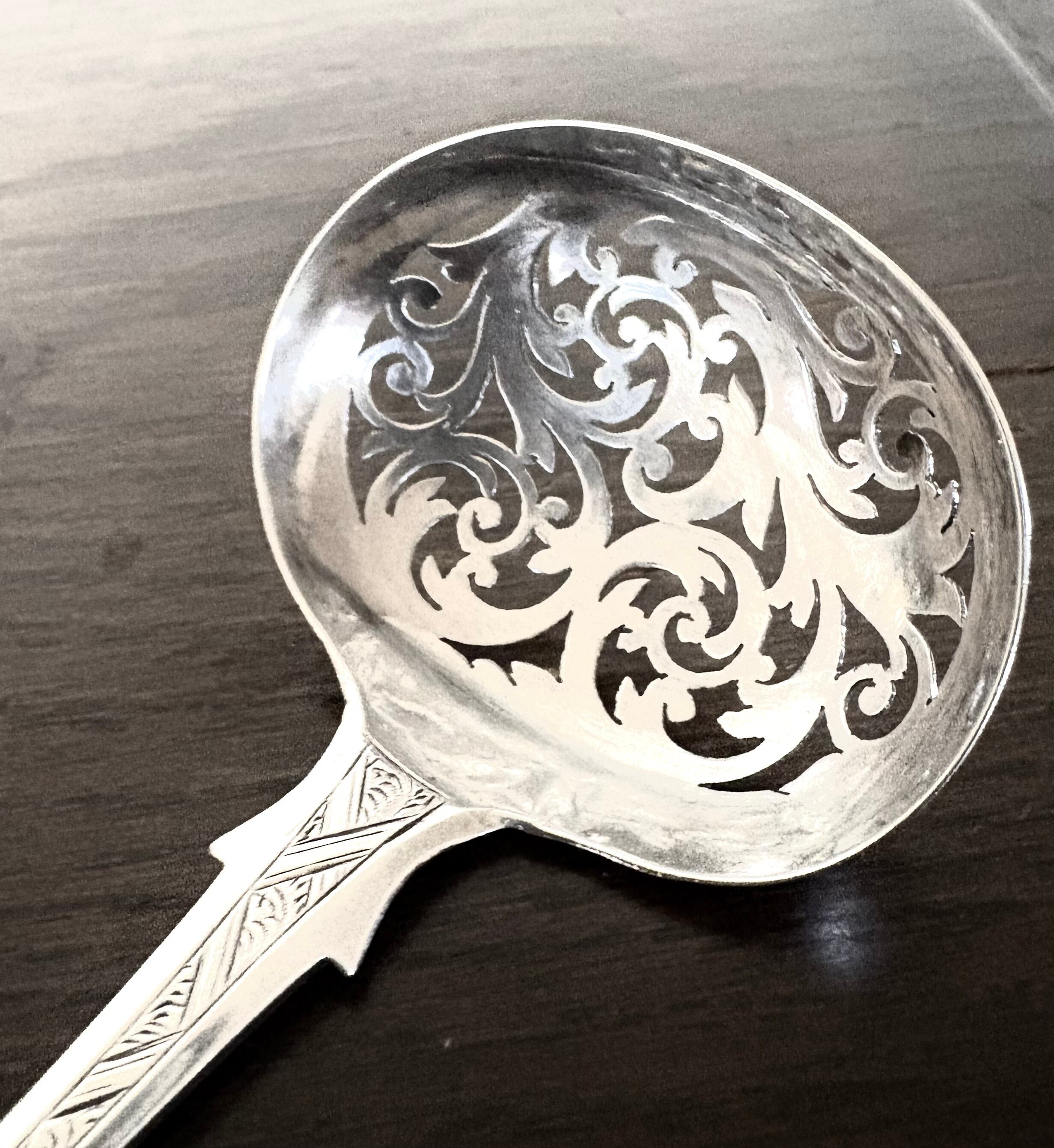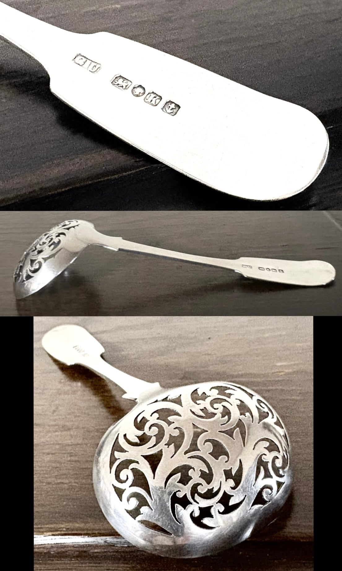 英国アンティーク シュガーシフタースプーン 葉模様 カトラリー シルバー純銀24.9g バーミンガム ビクトリア期1859年GU社製 アフタヌーンティー 英国雑貨 | 英国アンティークマーケット アンカー