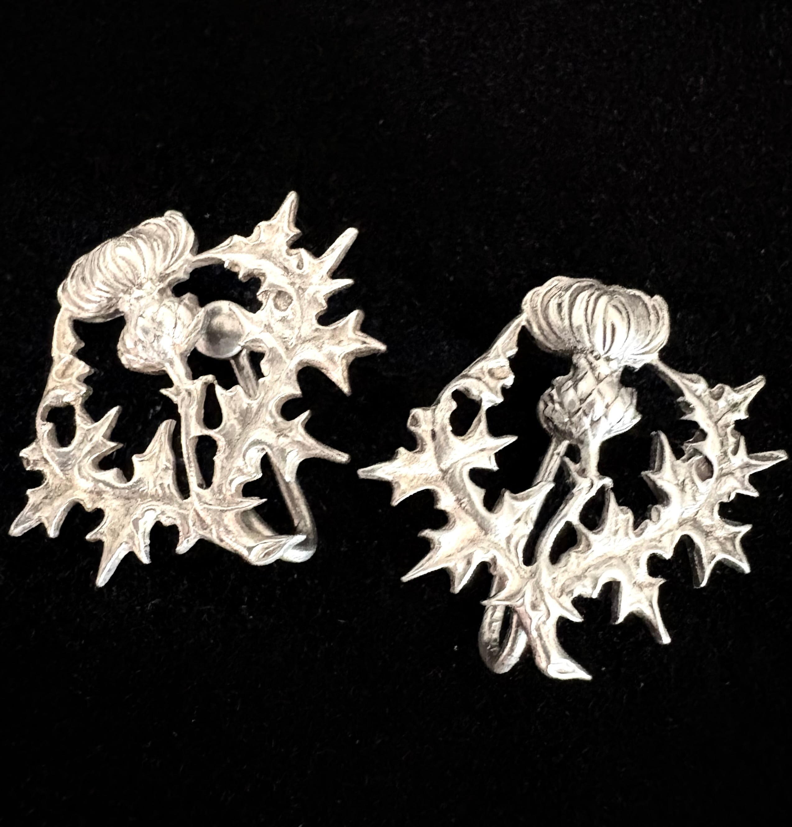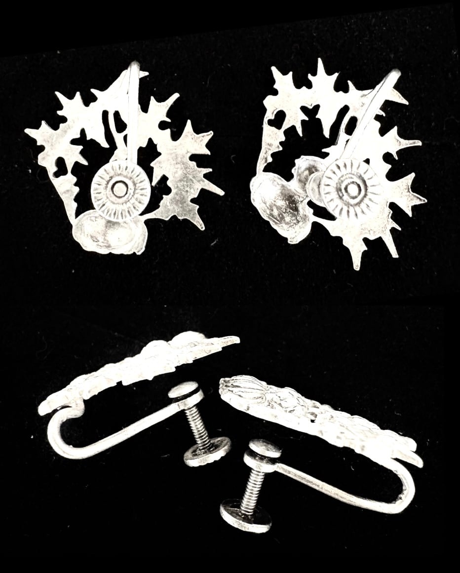 英国アンティーク シスル/アザミ ケルト イヤリング シルバー純銀4g ART-DECO 1920年 Ola M Gorie Orkney Jewellery ジュエリーボックス付 ケルティックファッション
