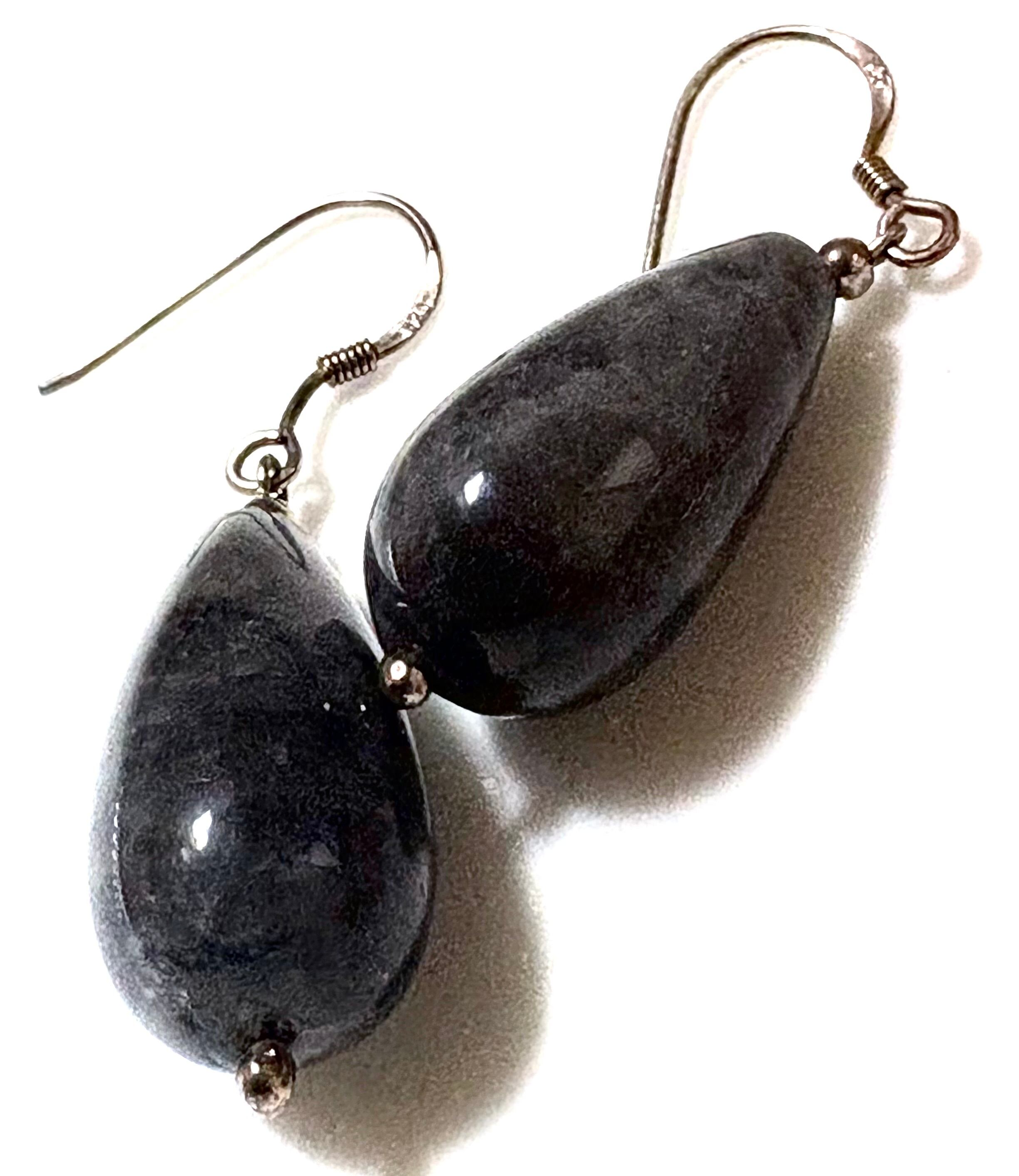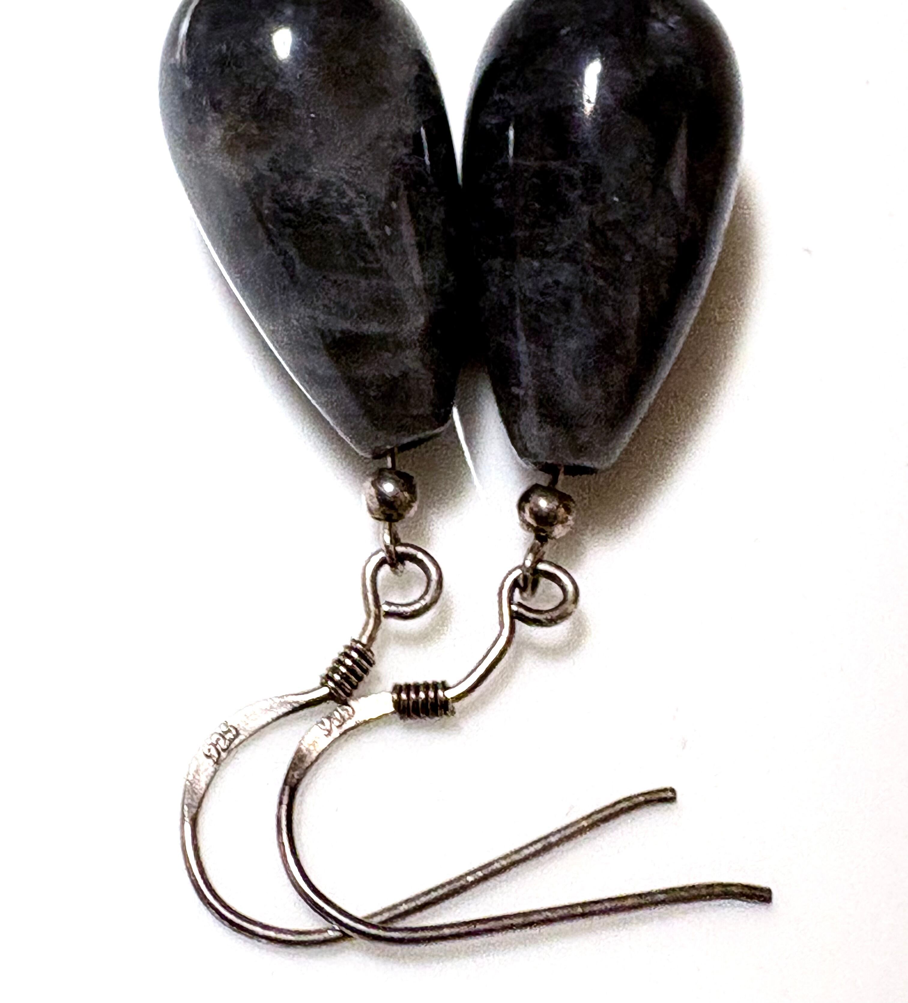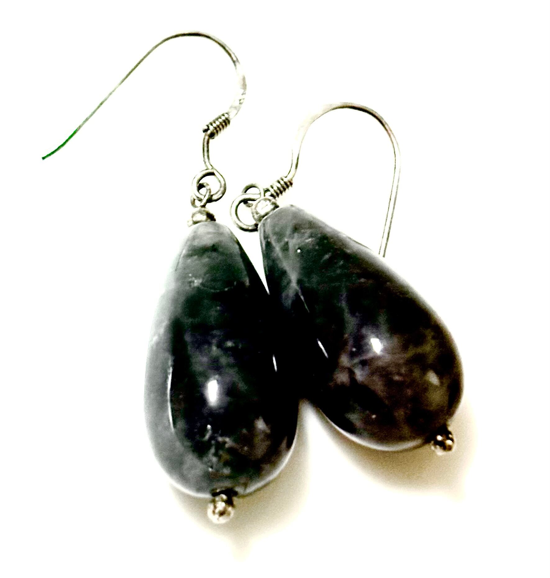 英国ビンテージ Labradorite/ラブラドライト ティアドロップ イヤリング/ピアス シルバー925 純銀9.2g ビンテージファッション