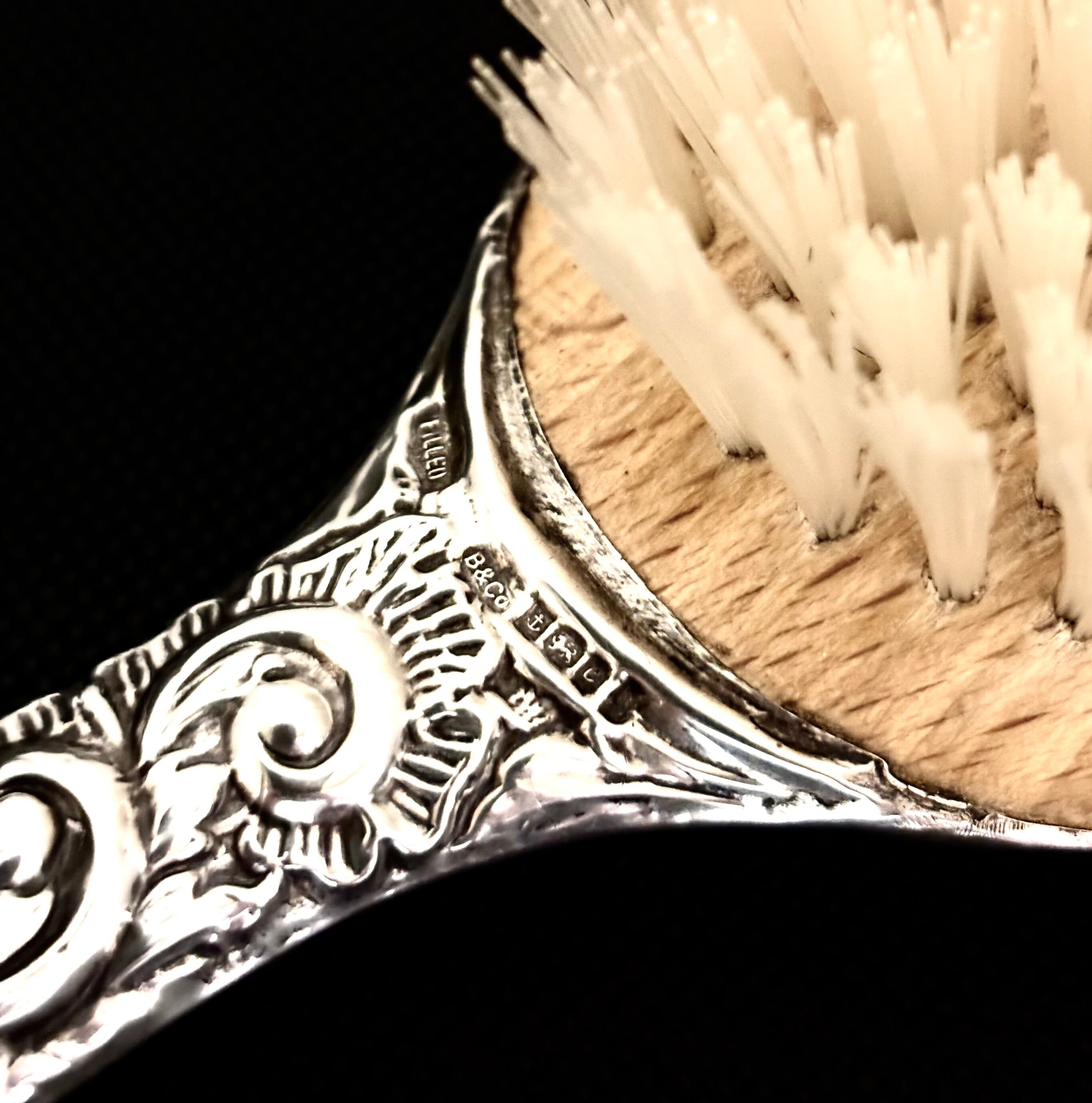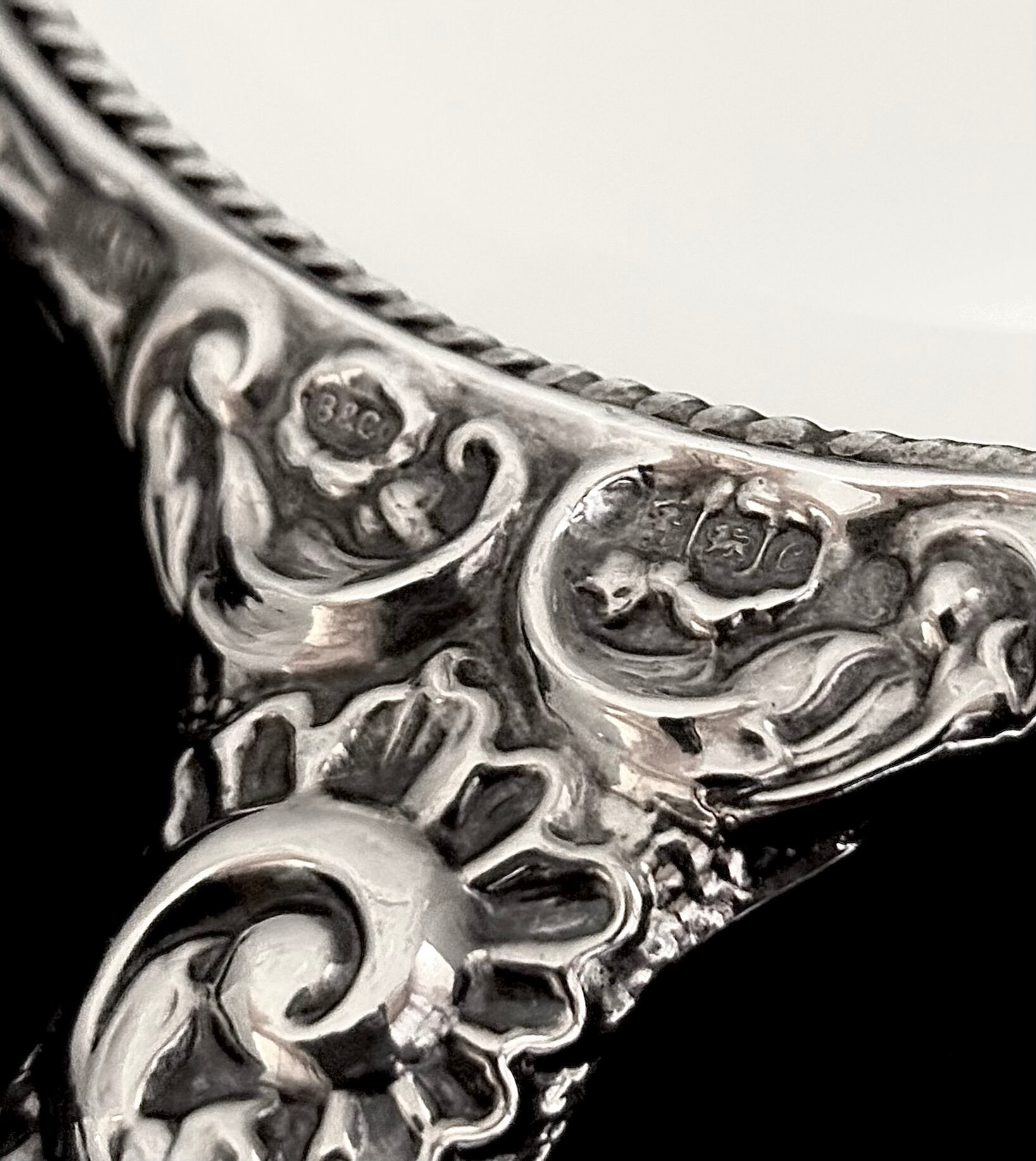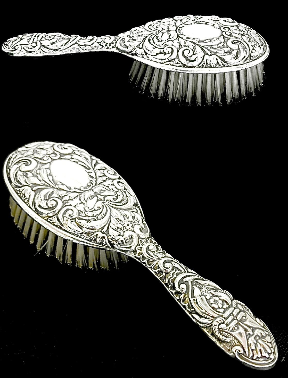 英国ビンテージ 手鏡&ブラシ 大型 ヴァニティ 3点セット ハンドミラー シルバー純銀 1970年代 B&Co社製 英国雑貨 英国スタイル ディスプレイ コレクターズ Broadway Co Solid Silver Three Piece Vanity Set Hand Mirror & Brushes