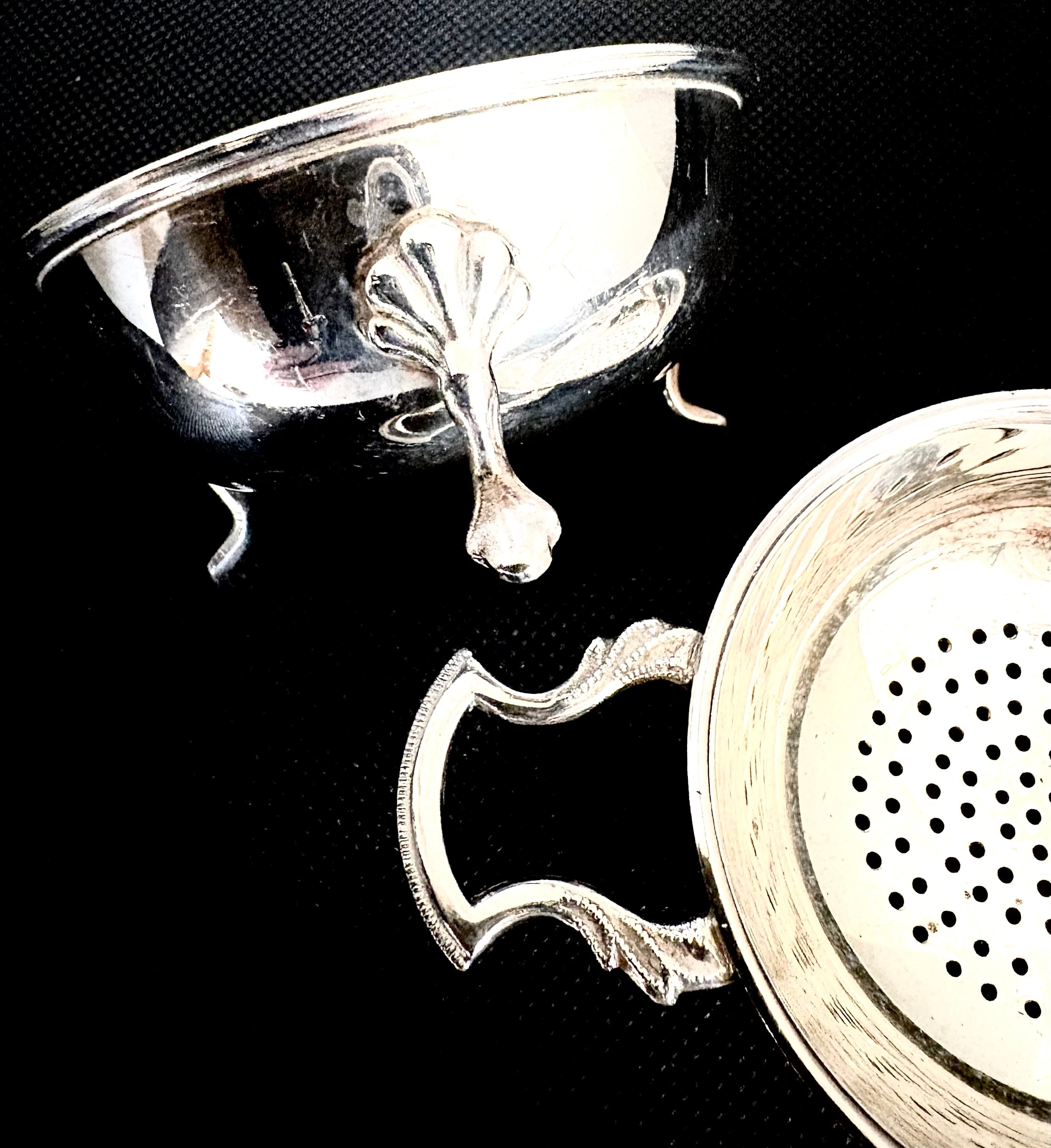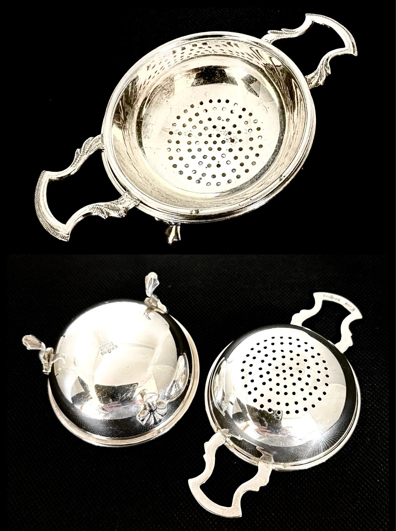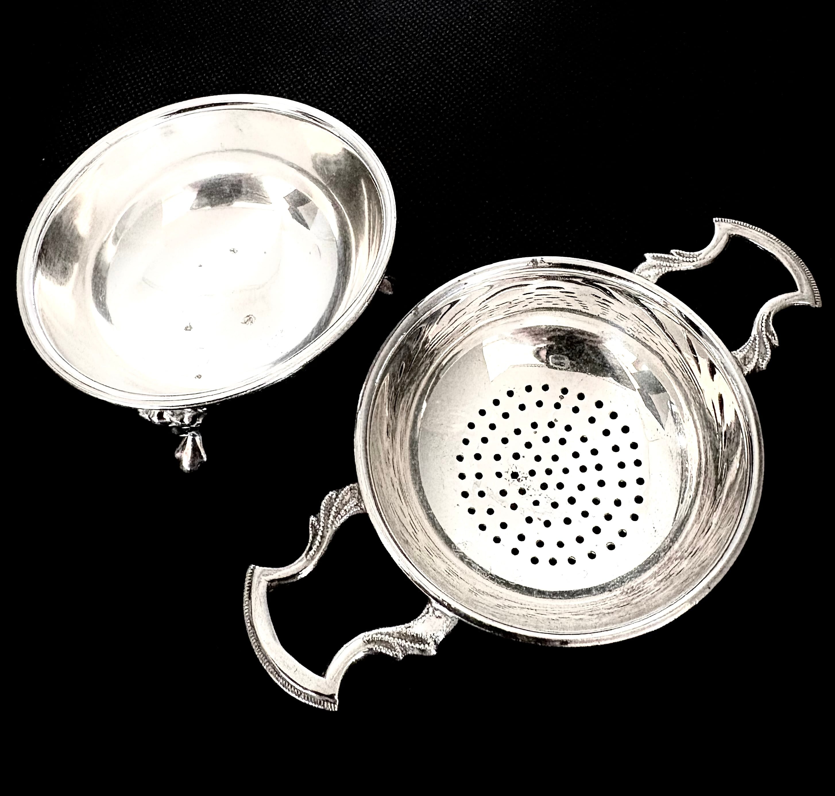英国アンティーク 1900年初期 ティーストレーナー ドリップハンドル/台座/クロウスタンド付 茶こし 紅茶 茶道具 シルバーp EPNS アフタヌーンティー 英国雑貨