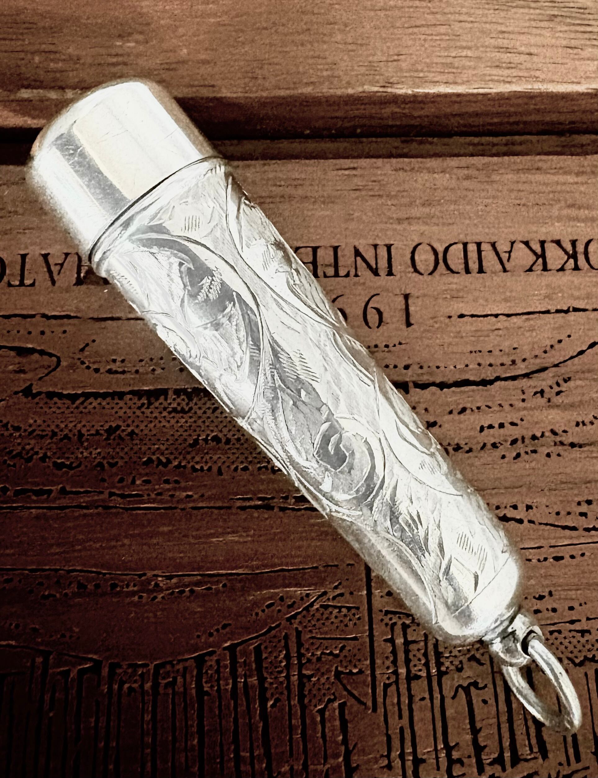 英国アンティーク シガレットホルダー シャルロット ブライトカット 喫煙具 懐中時計/アルバートチェーン フォブ シルバー純銀8.9g バーミンガム 1909年 EW社製 紳士御用達 コレクターズ 英国スタイル
