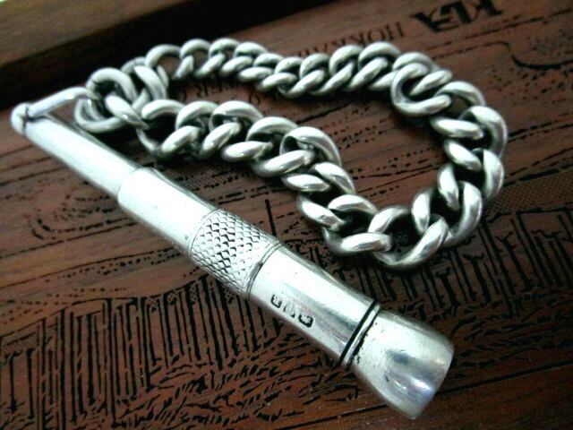 英国純銀製シガーピーサー付アルバートチェーンのご紹介です。