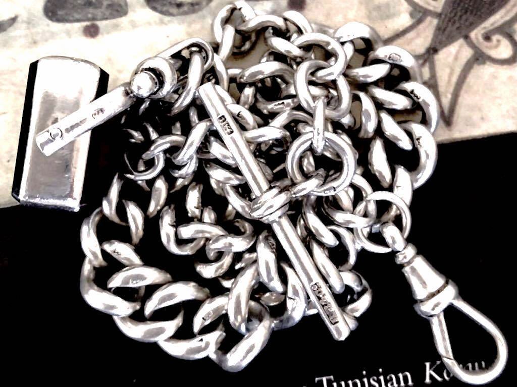 英国純銀製、懐中時計用アルバートチェーンのご紹介です。