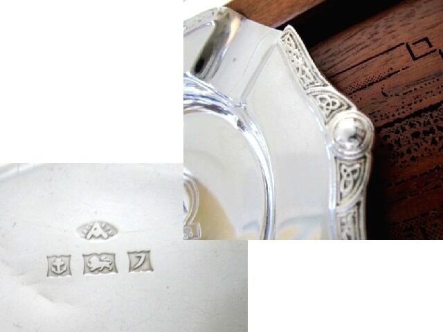 英国ビンテージ シルバーシガーアッシュトレイ ケルトノット 灰皿 純銀 39g イギリス雑貨 バーミンガム1958年