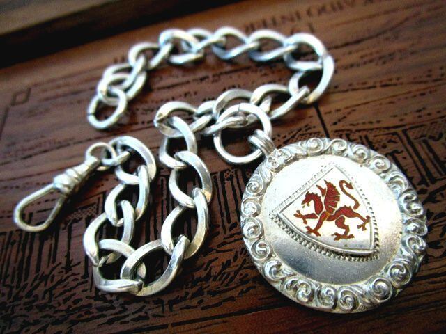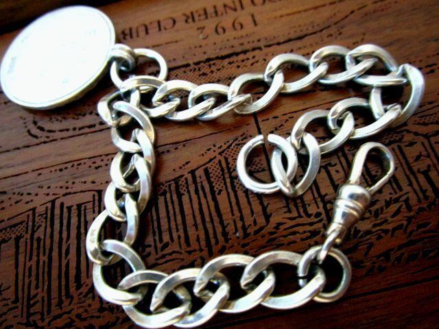 メンズ 英国アンティーク ビンテージ リンクチェーン フォブ シルバーブレスレット 純銀 バーミンガム1938年V&S社製