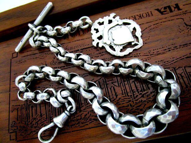 英国アンティーク グラジュエート リンク チェーン フォブ 純銀 36g 極太 懐中時計 ジョージ5世 バーミンガム CDB社製