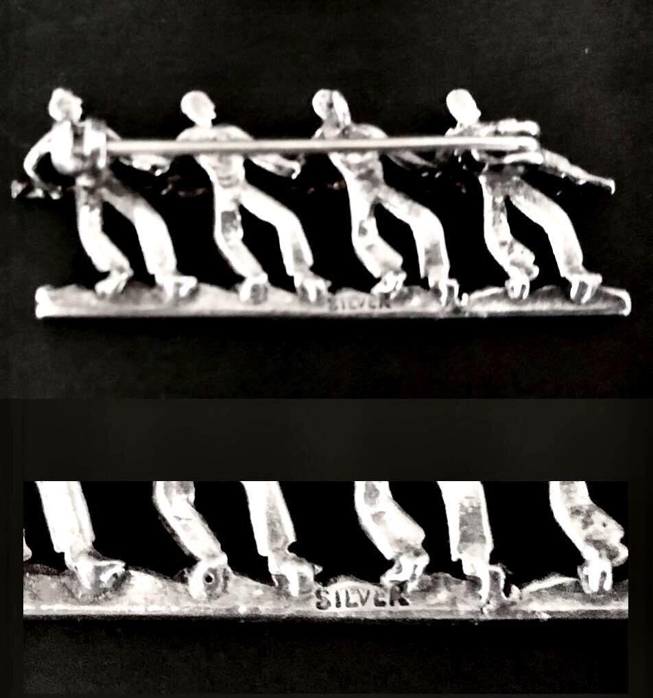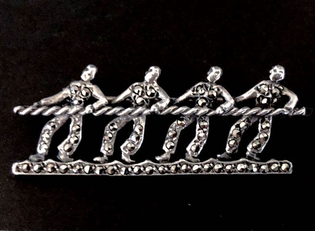 英国ビンテージ スターリングシルバー925 ブローチ 綱引き 純銀5.8g マーカサイト ART DECO/MARCASITE 箱付 ビンテージファッション レディースファッション