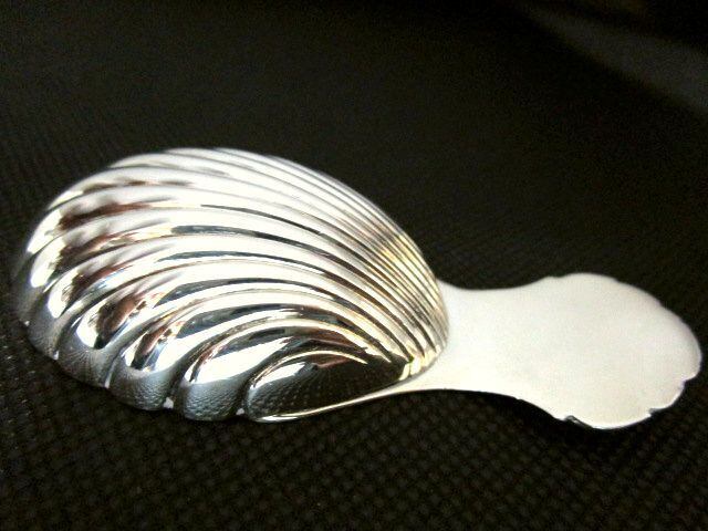 英国ビンテージ スターリングシルバーキャディースプーン シェル型 コキーユ 紅茶 純銀 シェフィールド 1978年 純銀 FH社製