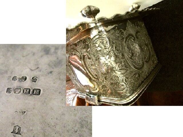 英国アンティーク シルバーP ビスケット BOX 草花装飾 銀箱 蓋 スタンド付 キャディー1078g ビクトリア期 イギリス雑貨