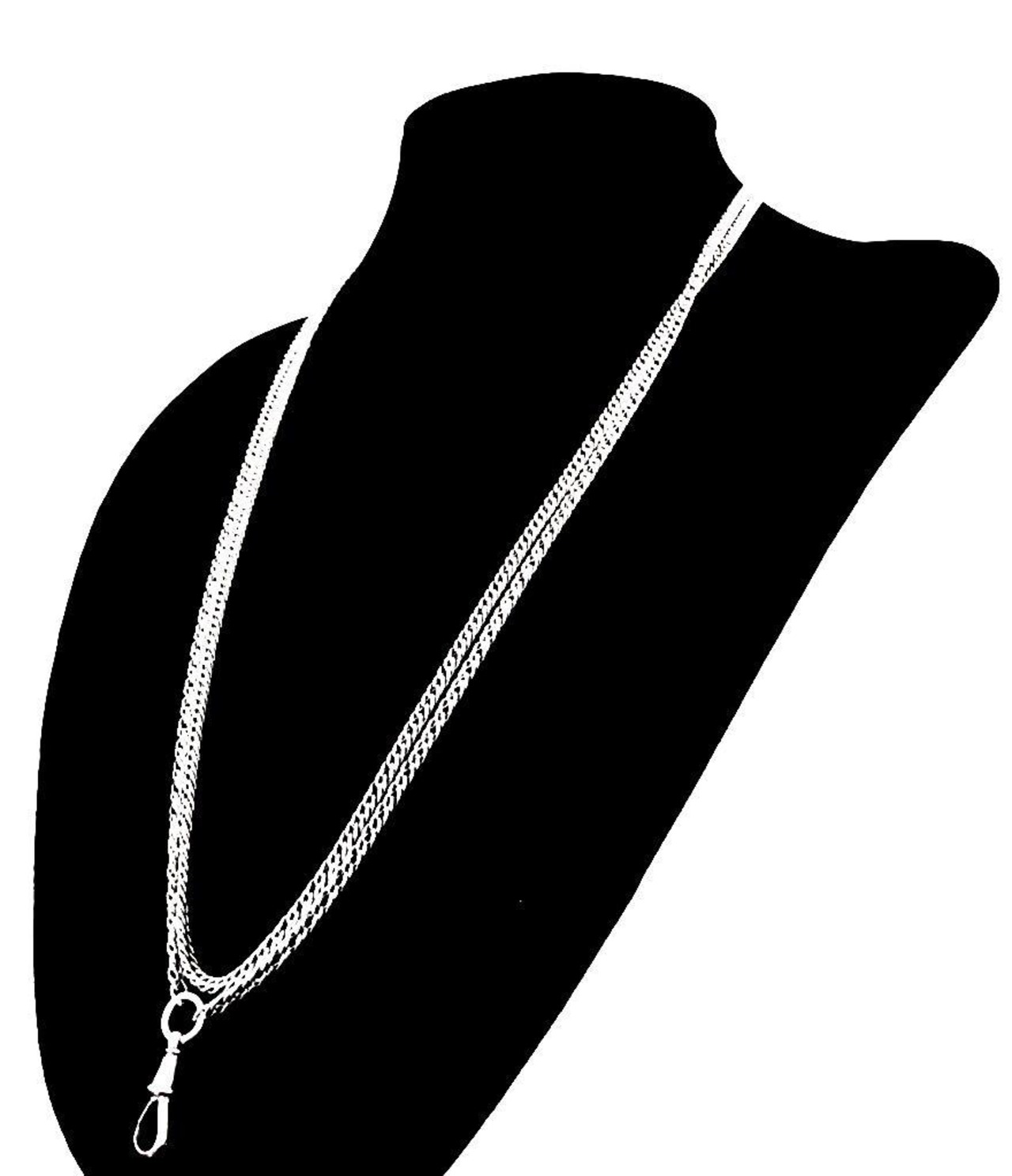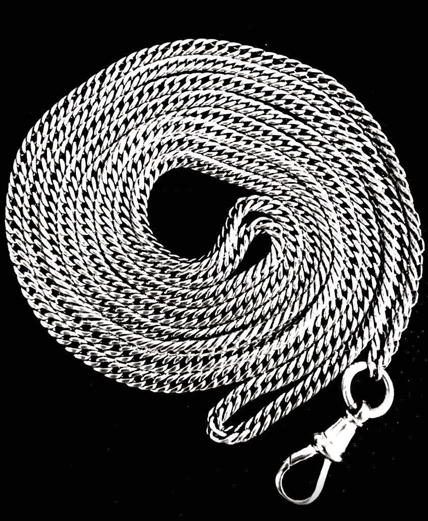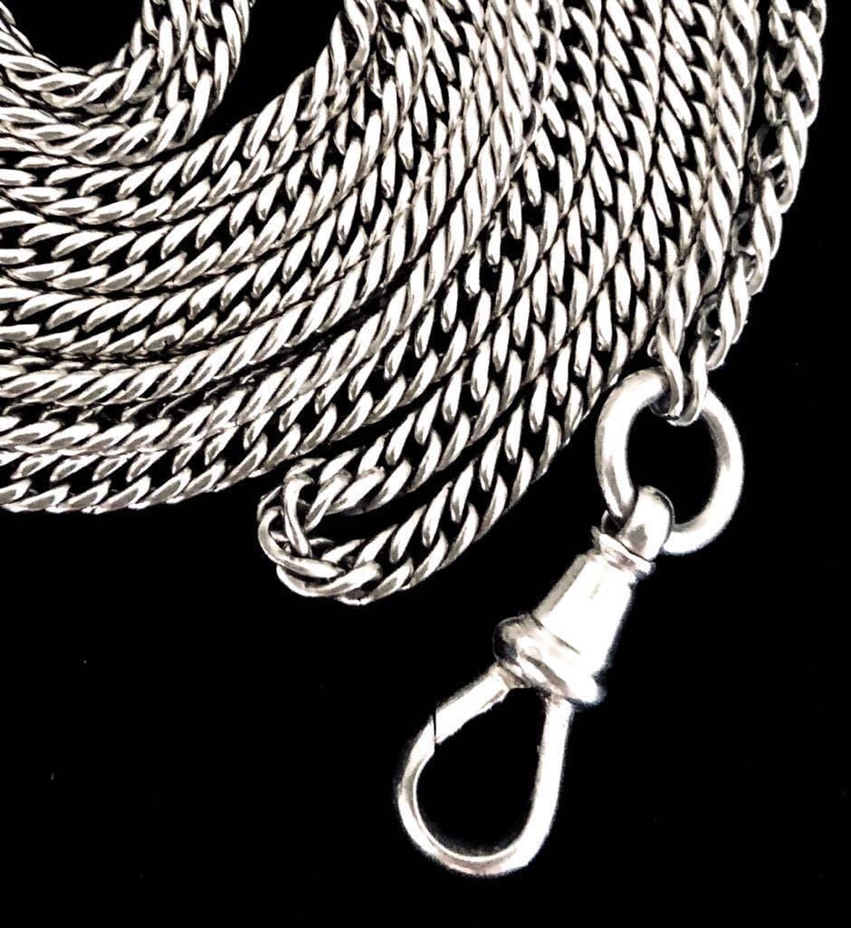 英国アンティーク スターリングシルバー MUFF/マフ チェーン/ガード/ウォッチ ロングチェーン ネックレス 118cm 豪華二連 純銀 29.8g 懐中時計 ビクトリア期