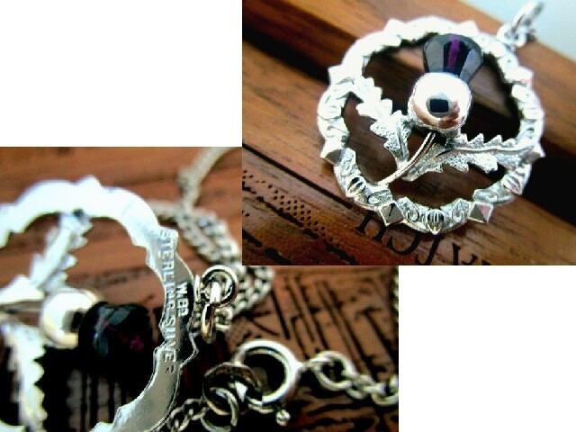 英国ビンテージ スターリングシルバー ペンダント/ネックレス チェーン シスル アザミ ケルト アメジスト スコットランド WBS社