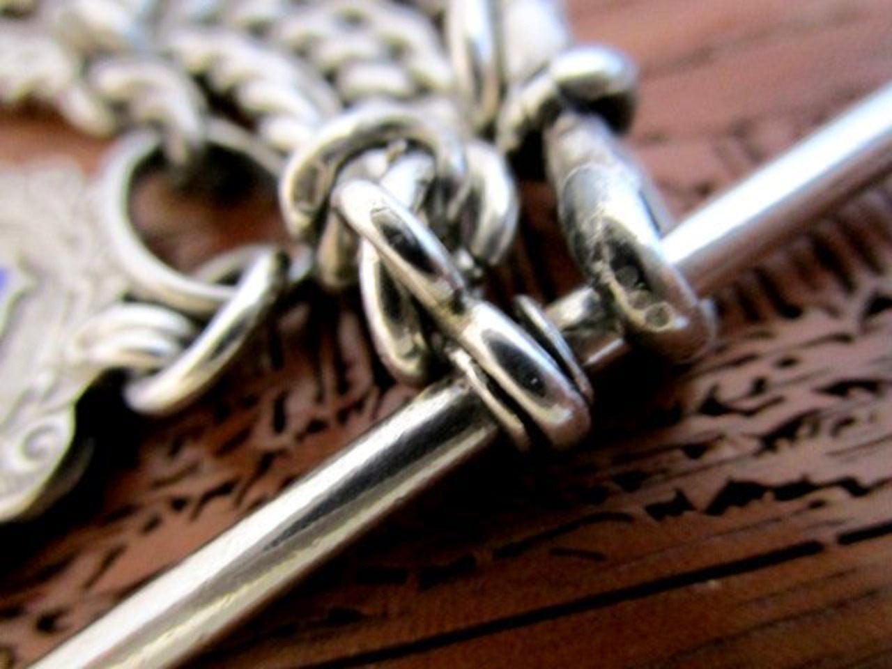 英国アンティーク シルバー 極太チェーン エナメル フォブ 52g 純銀 懐中時計 イギリス チェスター1937年CU社製