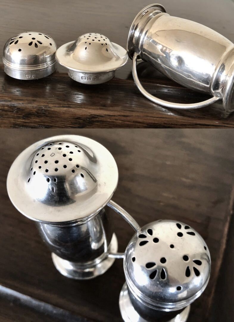英国アンティーク ソルト&ペッパー 調味料セット シルバーカトラリー2点 純銀 ジョージ5世1914-19年 L&S社製 バーミンガム/全刻印 シルバーホールマーク テーブルコーディネート テーブルウェア | 英国アンティークマーケット アンカー