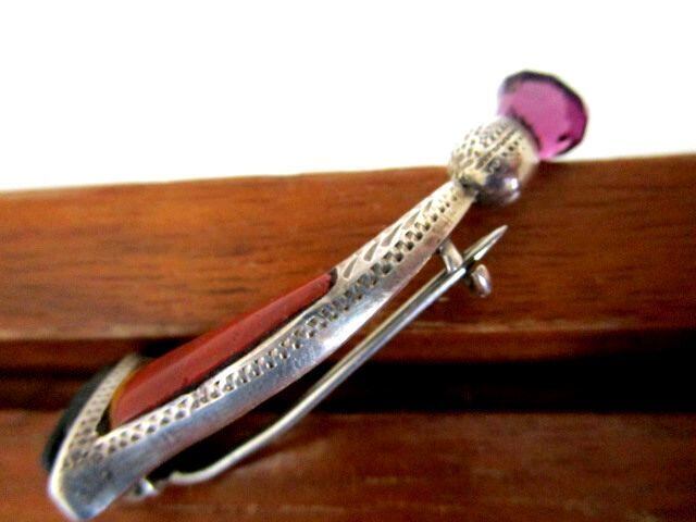英国アンティーク スターリングシルバー シスル/アザミ ブローチ ホーン型 アメジスト アゲート 純銀 バーミンガム1914年 ALLD社製 アンティークジュエリー ビンテージジュエリー ビンテージアクセサリー ビクトリアンファッション シルバーホールマーク Britishmade アンテ