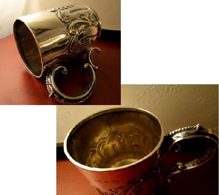 英国 アンティーク シルバーマグカップ 彫金装飾 純銀 VICTORIAN バーミンガム 1898年SB社製
