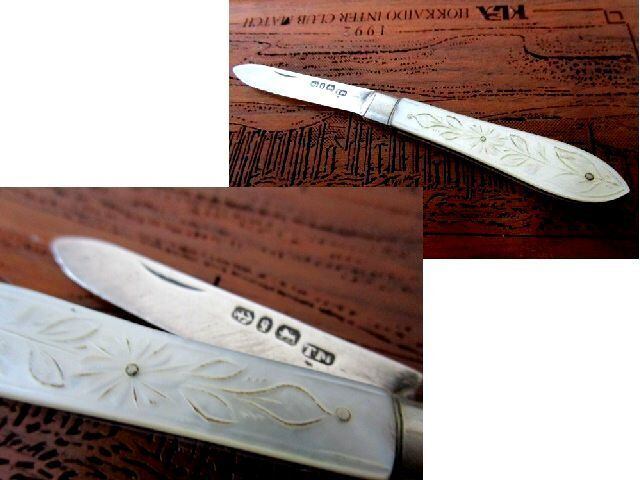 英国アンティーク シルバー ポケット ペンナイフ 純銀ブレード 白蝶貝 小型 ビクトリアン バーミンガム1890年TM社製