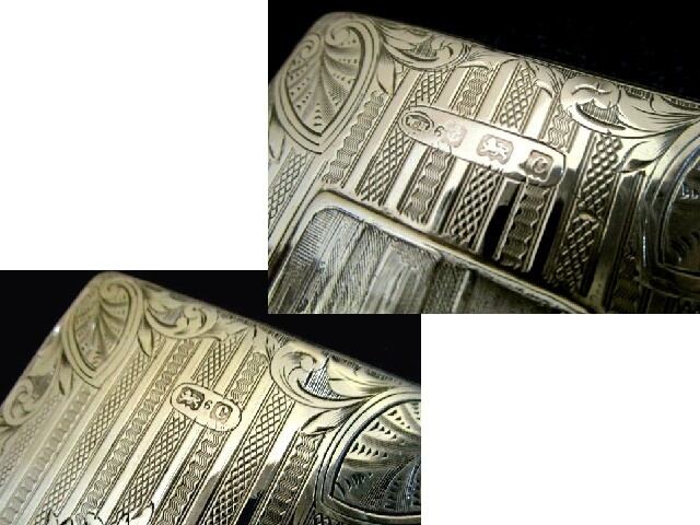 英国アンティーク シルバーカードケース 大判 財布 純銀&革製 紳士.淑女絵柄 両面装飾 ペンシル エドワード期バーミンガム1902年WH社製