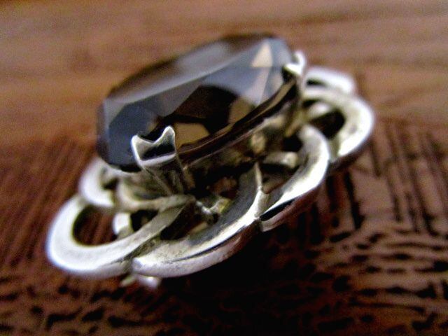 英国ビンテージ シルバー925 スモーキークォーツ ブローチ ケルトノット Celtic スコティッシュ 純銀 エジンバラ1973年JF社製