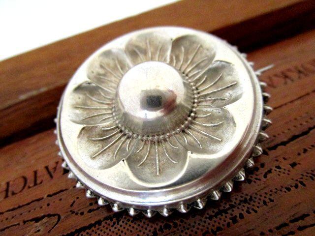 英国アンティーク シルバーブローチ 花模様 純銀 ビクトリア期 1800年代後期 ラウンド型 5.2g