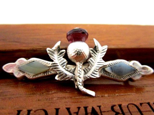 英国アンティーク スターリングシルバー シスル/アザミ ブローチ スコティッシュ アメジスト アゲート 純銀