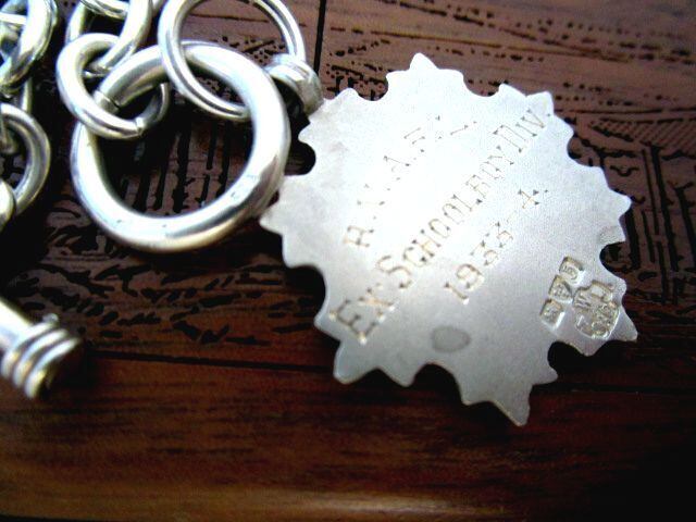 英国アンティーク ビンテージ トグル TBAR リンクチェーン エナメル フォブ シルバーブレスレット 純銀 チェスター1933年TWL社