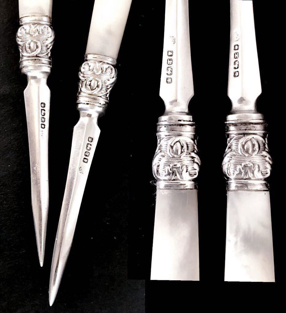英国アンティーク 白蝶貝ナッピック シルバー カトラリーセット ビクトリア期1886年 WD社製 2本箱付 BAR用品 シェフィールド アンティークボックス 英国雑貨 アンティークコレクション