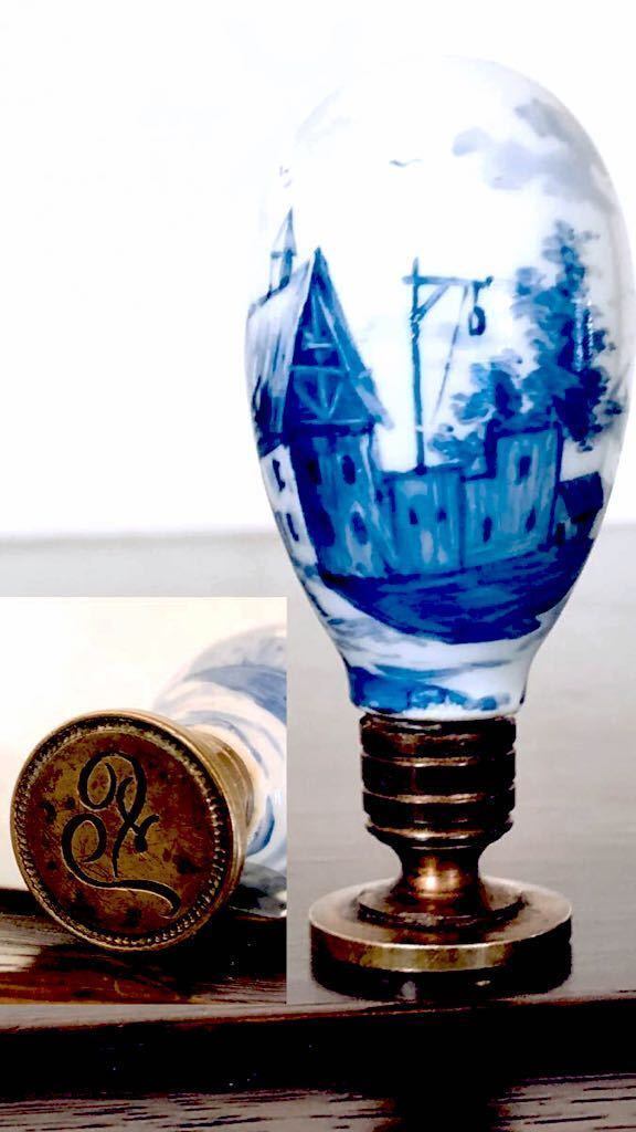 オランダ アンティーク デルフト 陶器 デスクシール シーリングワックス 封蝋 6.5cm 39g アンティーク文具 ポーセリン アンティーク雑貨 アンテークディスプレイ アンティークコレクション Delft porcelain