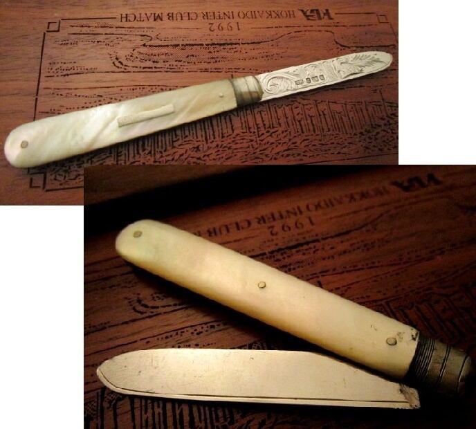 英国 アンティーク シルバーナイフ 純銀ブレード マーザーオブパール シェフィールド エドワード期 1909年
