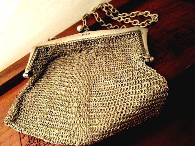 やや長めのチェーン付きでシルバーメッシュが素敵なアンティーク品です。