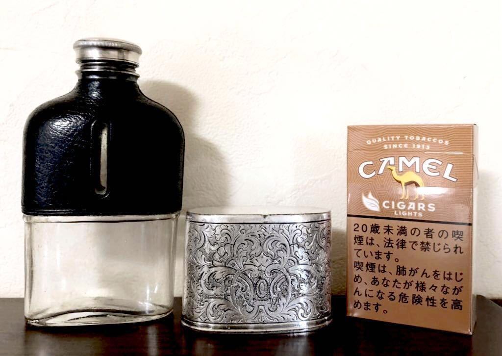 英国製アンティーク/オールドボトルのヒップフラスクです。