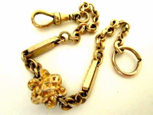 英国アンティーク ROLLED GOLD ゴールド チェーン フォブ ブレスレット 懐中時計10.3g ビクトリア期 Thomas Hopwood