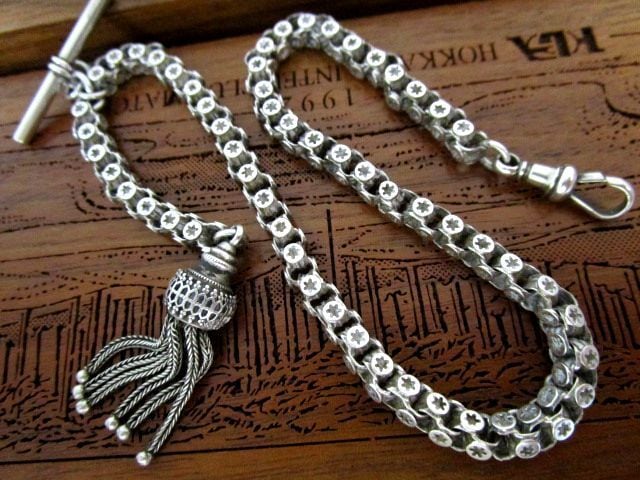 英国純銀製、懐中時計用のチェーンのご紹介です。