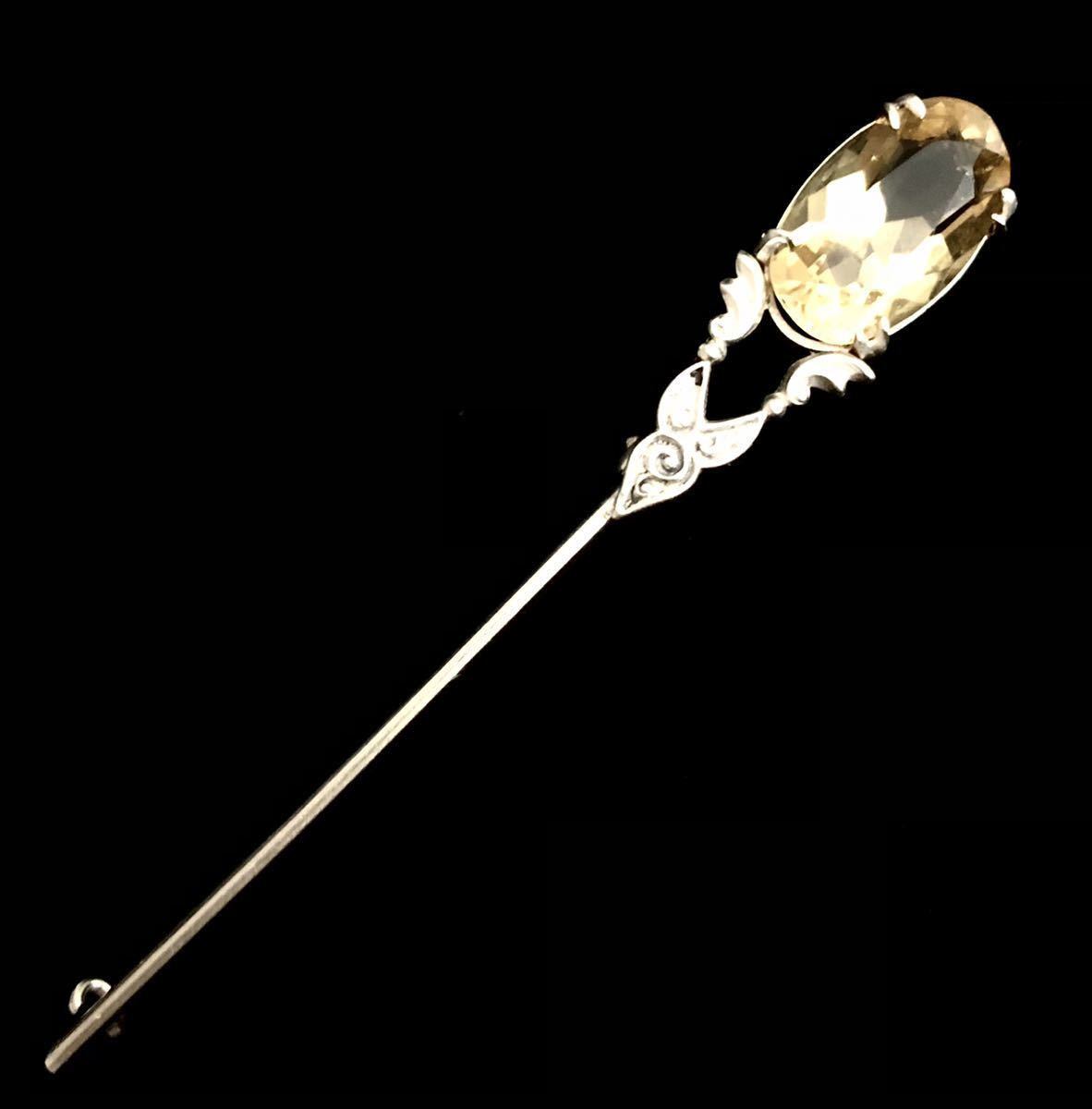 英国ビンテージ シルバー ピンブローチ Celtic ケルト 純銀 4.6g スコットランド シトリン石付 Celtic ケルト神話 スコットランド シェットランド IONA アンティークジュエリー ビンテージジュエリー ビンテージアクセサリー ビクトリアンファッション シルバーホールマーク