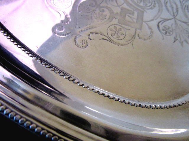 英国ビンテージ シルバーp ドリンクトレイ 32cm スタンド付き 植物系装飾 銀器