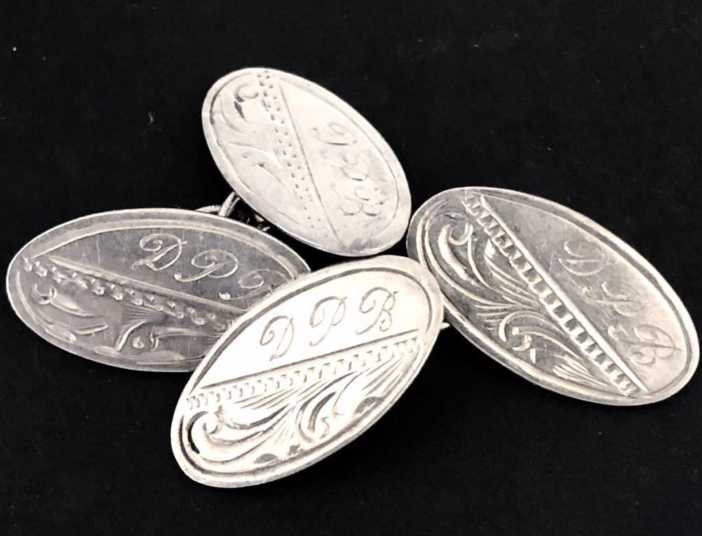 英国ビンテージ 楕円 スターリングシルバー925 カフス ボタン チェーン メンズ 紳士 純銀 4.7g WJS社製 メンズアクセサリー メンズファッション 英国ファッション ビンテージファッション コレクターズ 英国紳士 紳士御用達