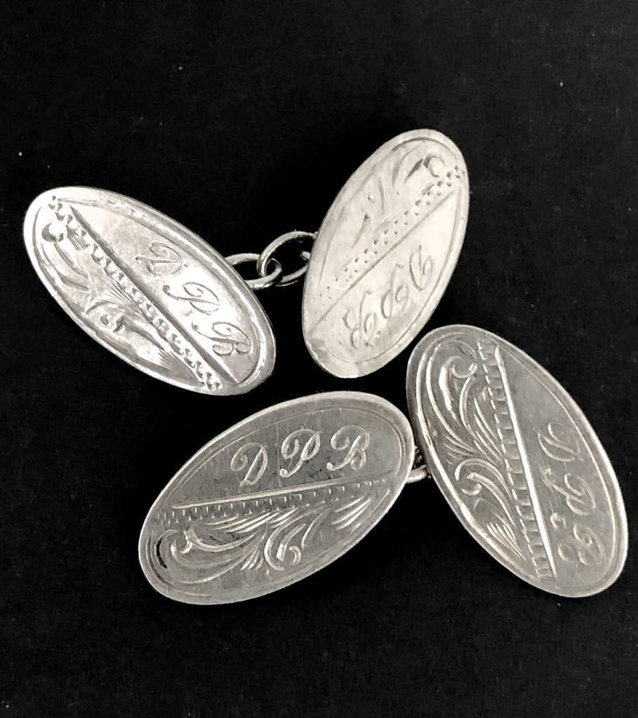英国より純銀製ビンテージ カフス/カフスボタンのご紹介です。