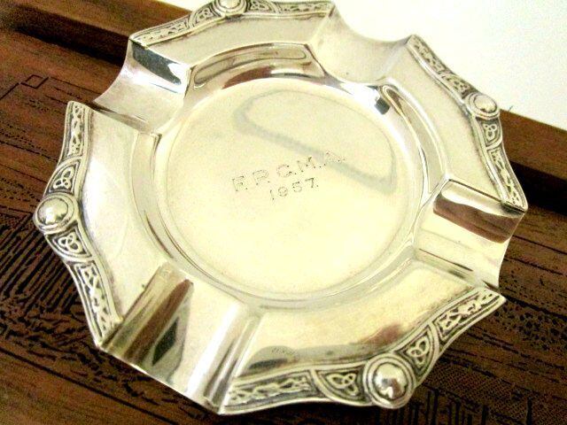 英国ビンテージ シルバー アッシュトレイ ケルトノット 灰皿 純銀 39g イギリス雑貨 バーミンガム1956年 店舗什器 アンティーク什器 アンテークディスプレイ アンティークのある生活 アンティークコレクション 喫煙具