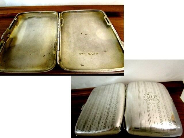 英国アンティーク シルバー シガレットケース ART DECO 58g 純銀 イギリス ジョージ5世 バーミンガム1918年JC社製