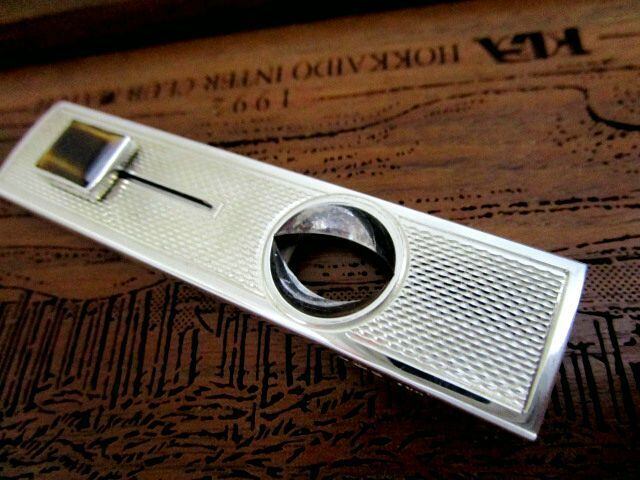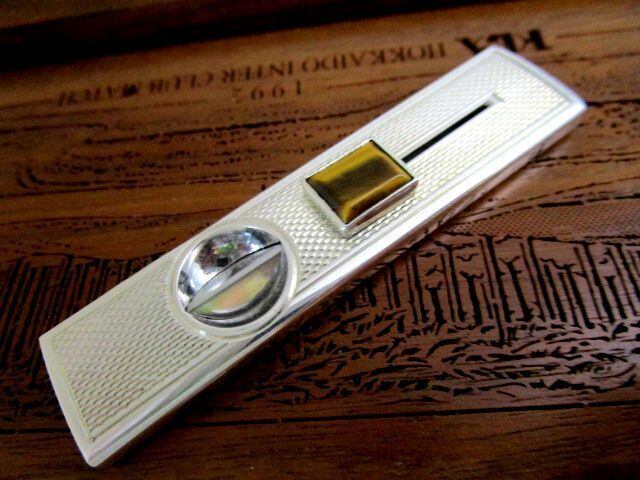 英国ビンテージ シルバー シガーカッター タイガーアイ石付 葉巻 ターンエンジン装飾 純銀バーミンガム1983年WM社製