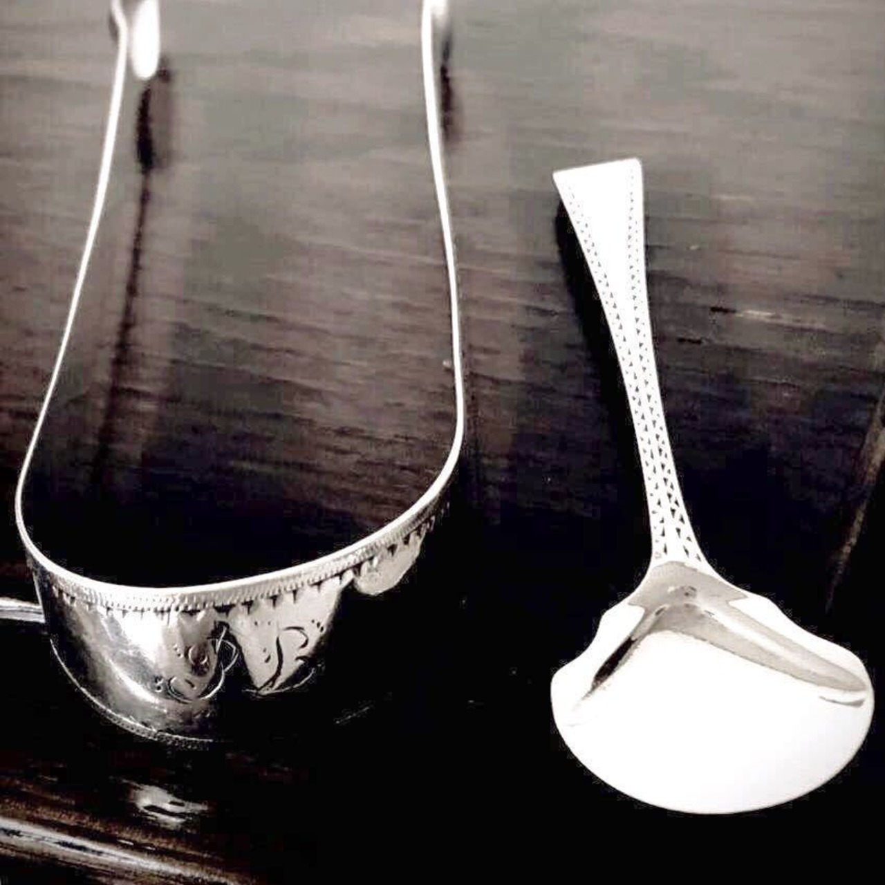 英国アンティーク ジョージアン・シルバー シュガートング 1804年&スプーン1788年 CSWF社製 シルバー純銀 ロンドン ジョージ3世 カトラリー2点セット アフタヌーンティー アンティークコレクション